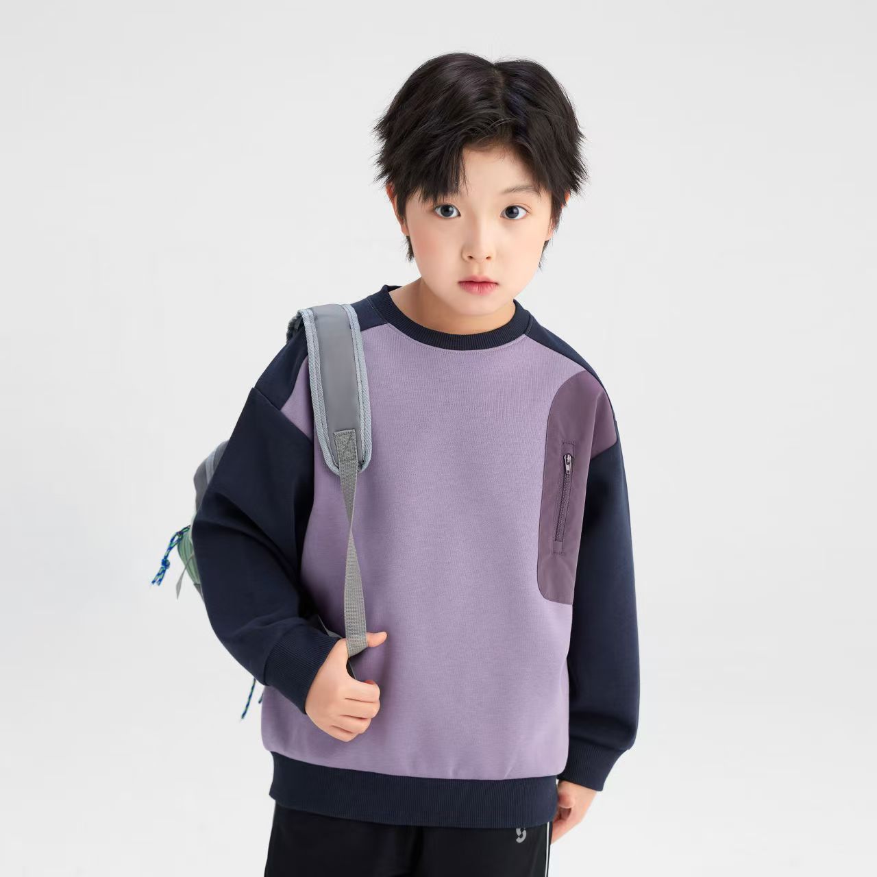 休闲童装男童卫衣春款儿童帅气潮男孩2025新款大童紫色圆领上衣