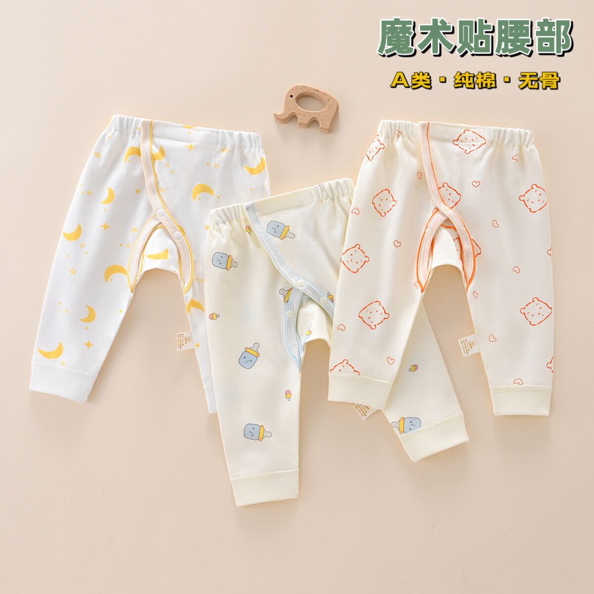 新生儿纯棉裤子魔术贴裤子四季款婴儿秋衣秋裤宝宝贴身无骨A类