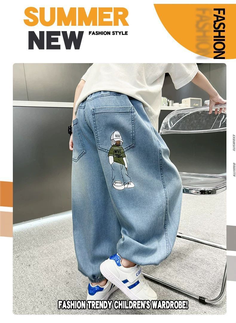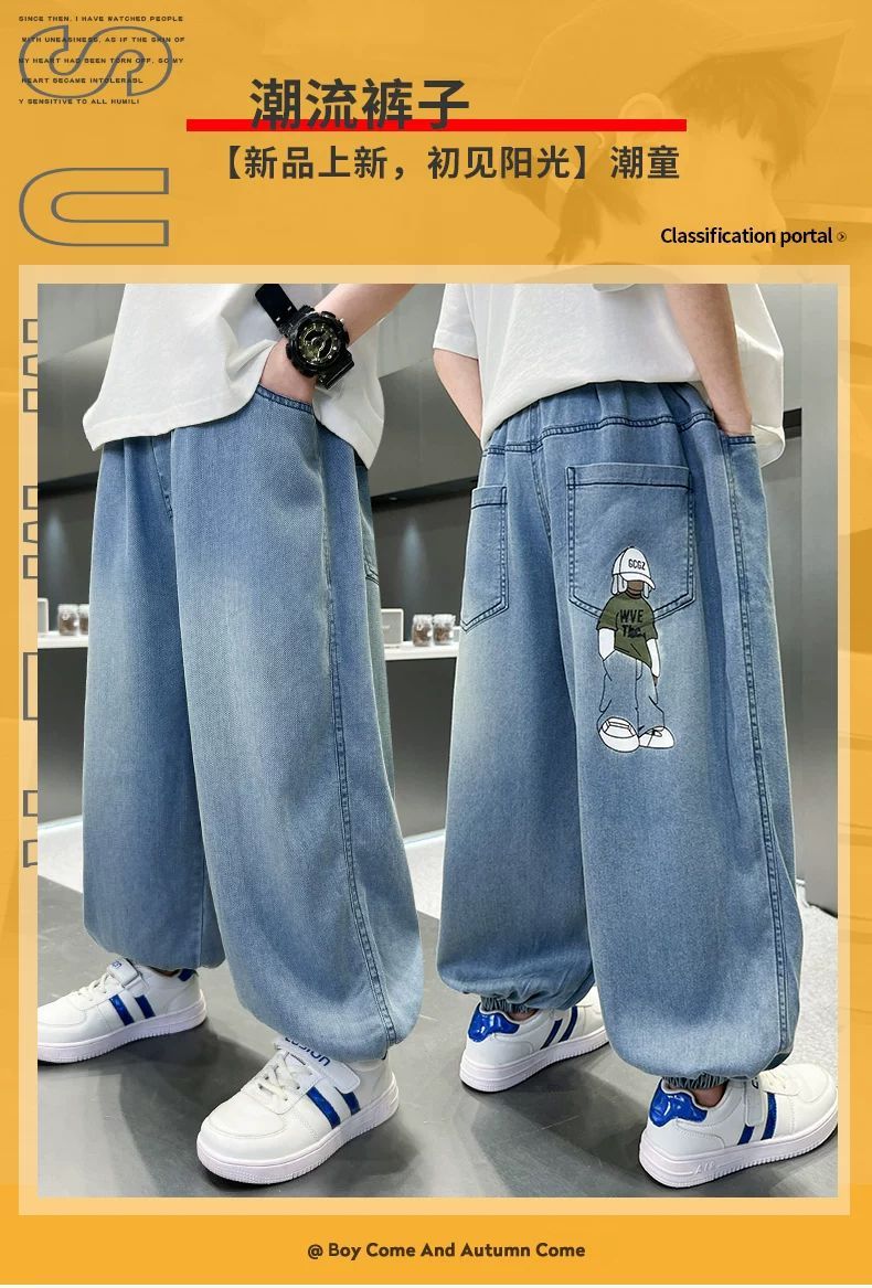 儿童装男童夏装薄款裤子2025新款夏季中大童休闲牛仔裤防蚊长裤