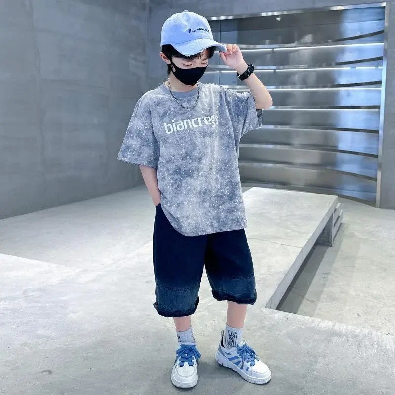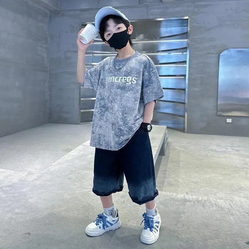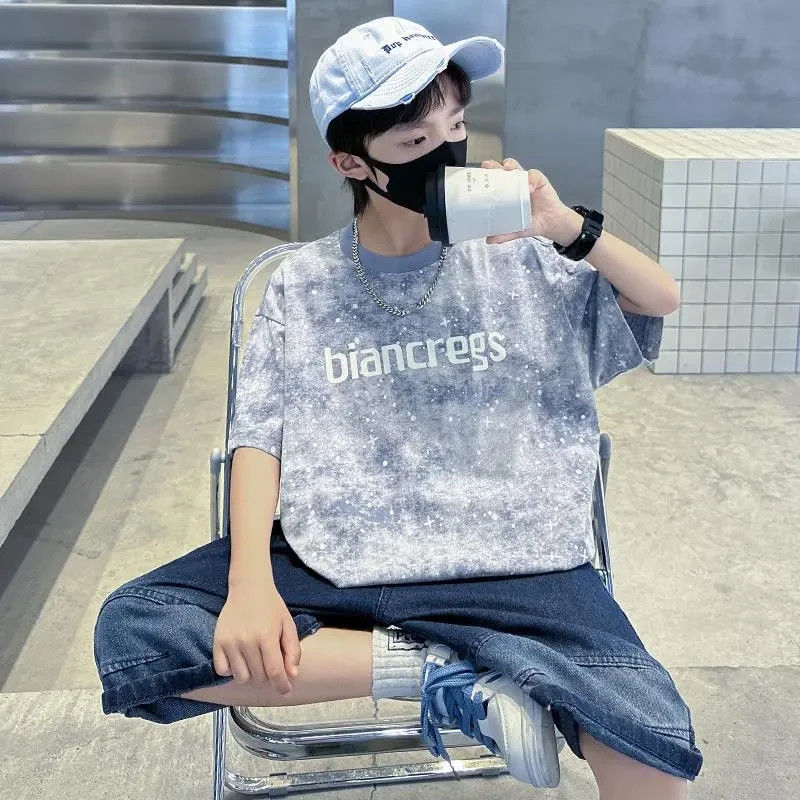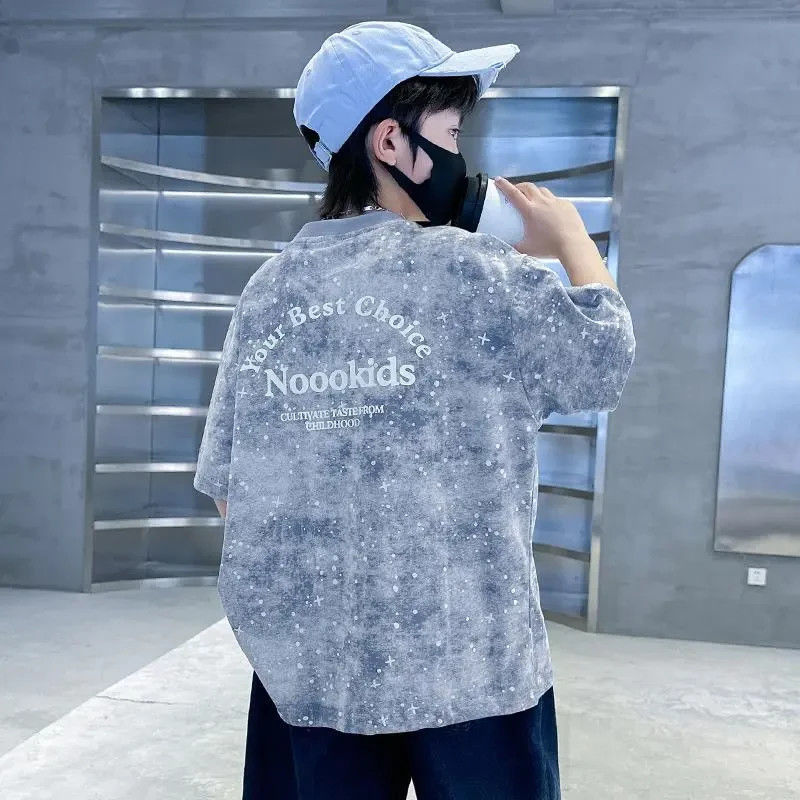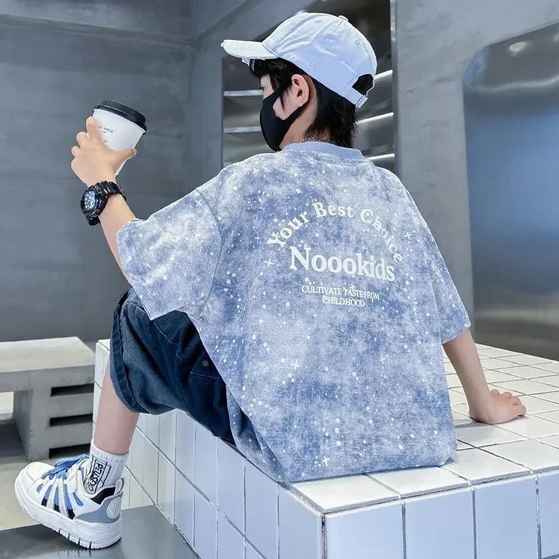 男童短袖T恤童装夏装新款儿童扎染夏季上衣爆款中大童半袖
