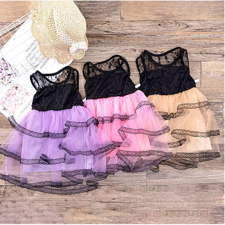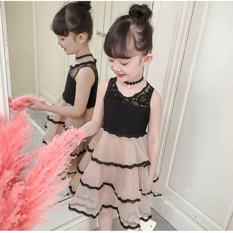 女童无袖连衣裙新款公主裙夏装潮韩版儿童夏季中大童黑丝蕾丝裙子