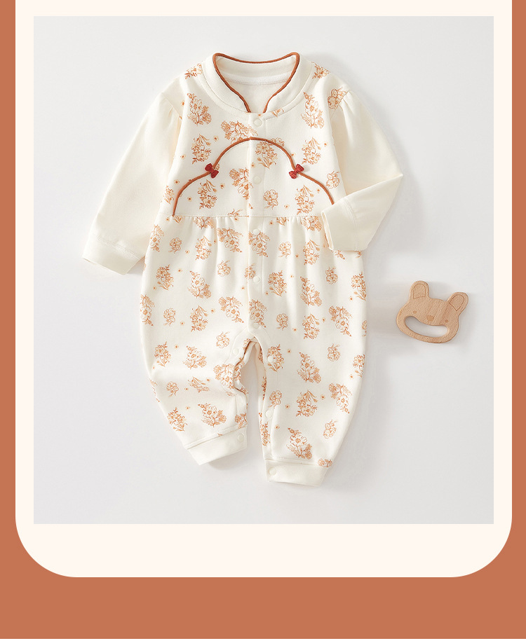 婴幼儿连体衣秋季a类女宝宝周岁礼服春秋外出新中式国风包屁衣
