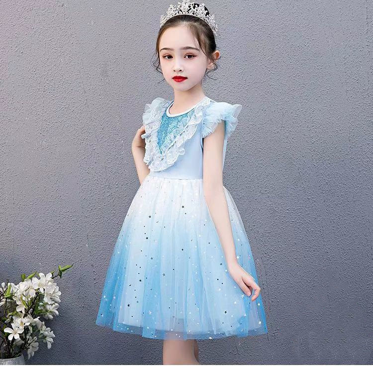 夏季女童短袖洋气新款爱莎连衣裙8岁冰雪奇缘2超仙公主裙