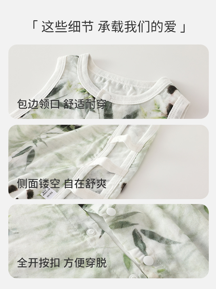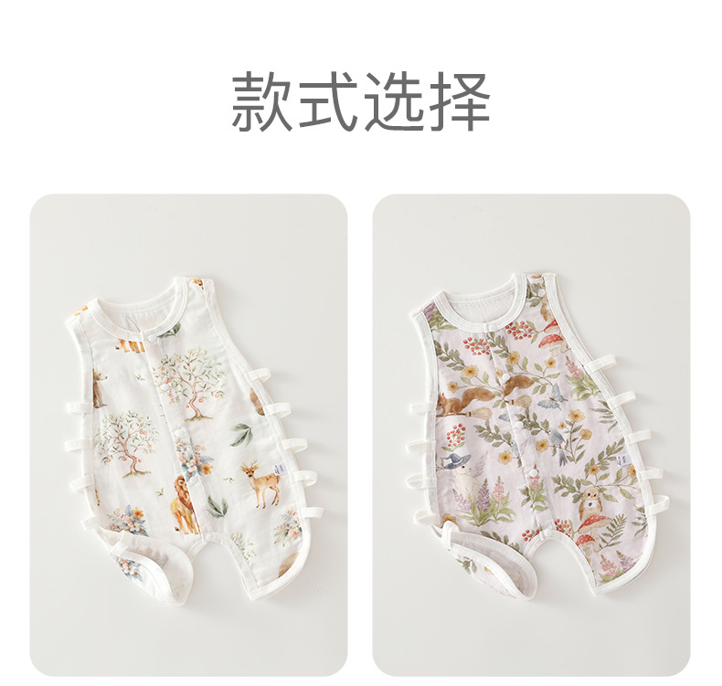 新生儿夏季琵琶纱布连体衣宝宝夏天薄款无袖竹棉连体婴儿透气背心