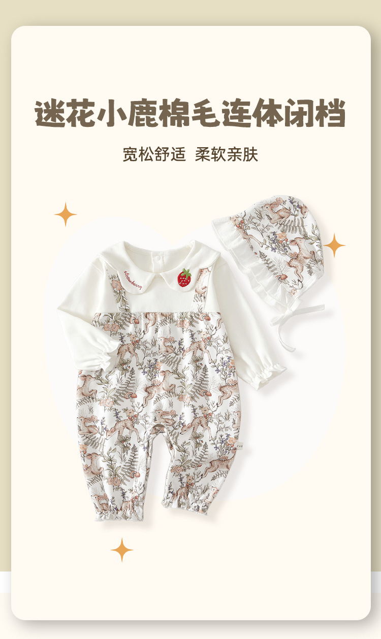 婴儿连体衣纯棉春秋款女宝宝国潮韩版四季衣服新生儿月子服包屁衣