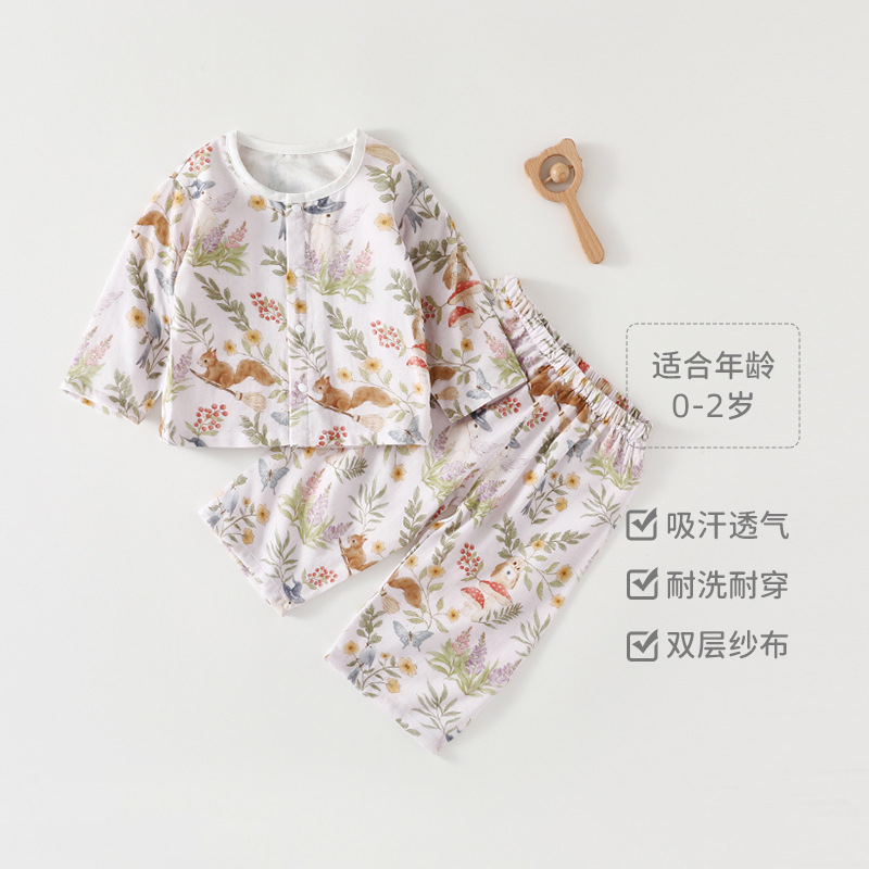 宝宝纱布长袖家居服套装婴幼儿分体夏季薄款空调服男女童凉感睡衣