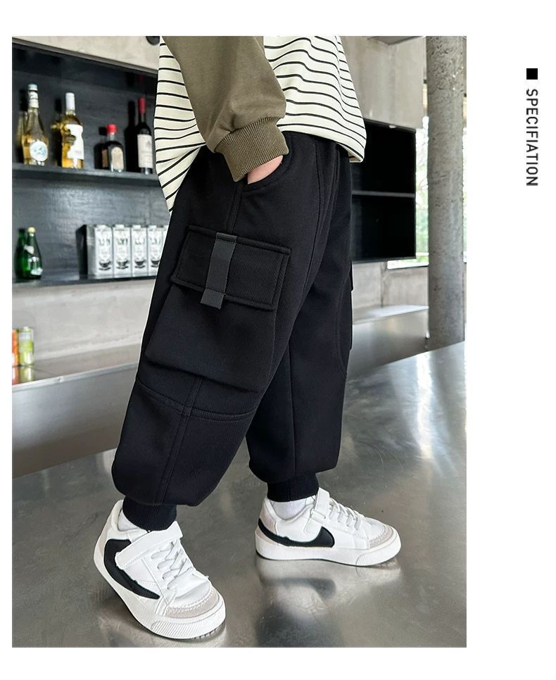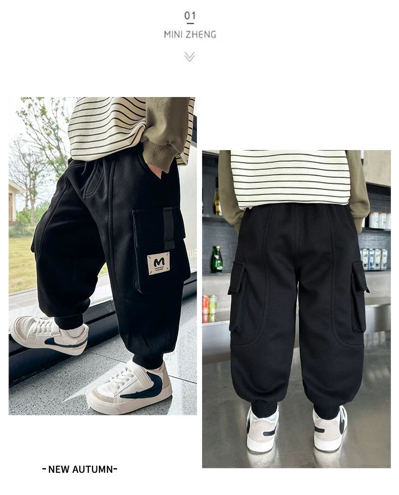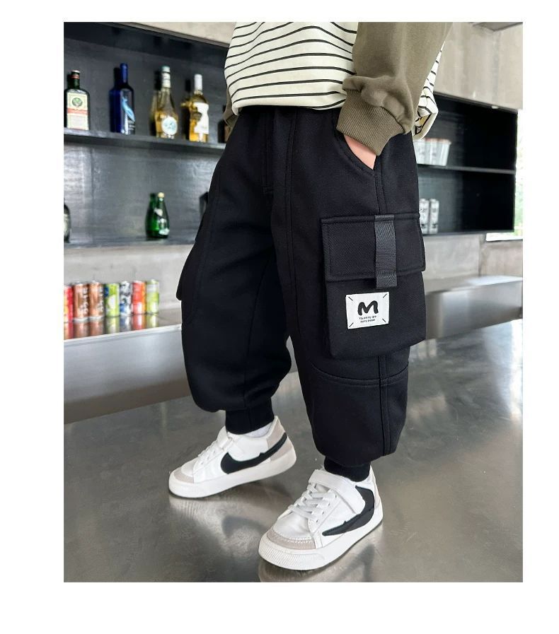 男童工装裤加绒冬装2025新款痞帅秋冬季裤子儿童一体绒帅气工装裤