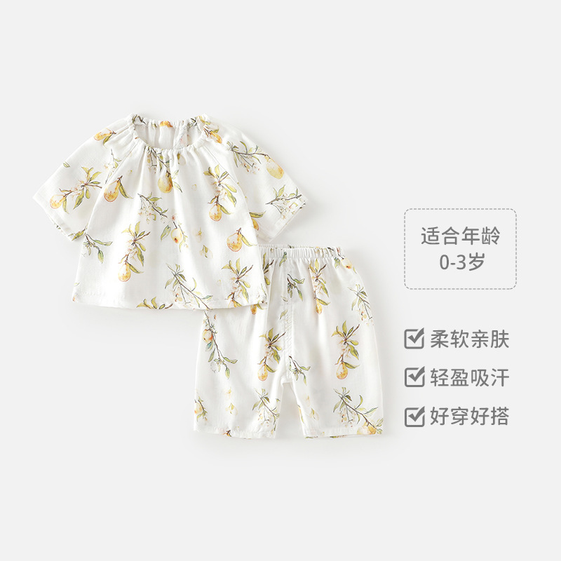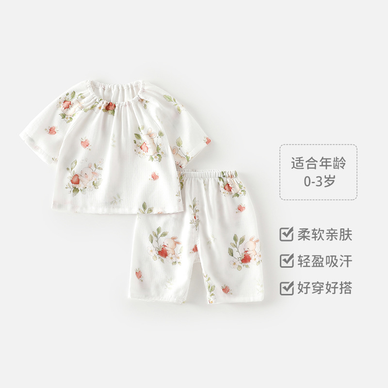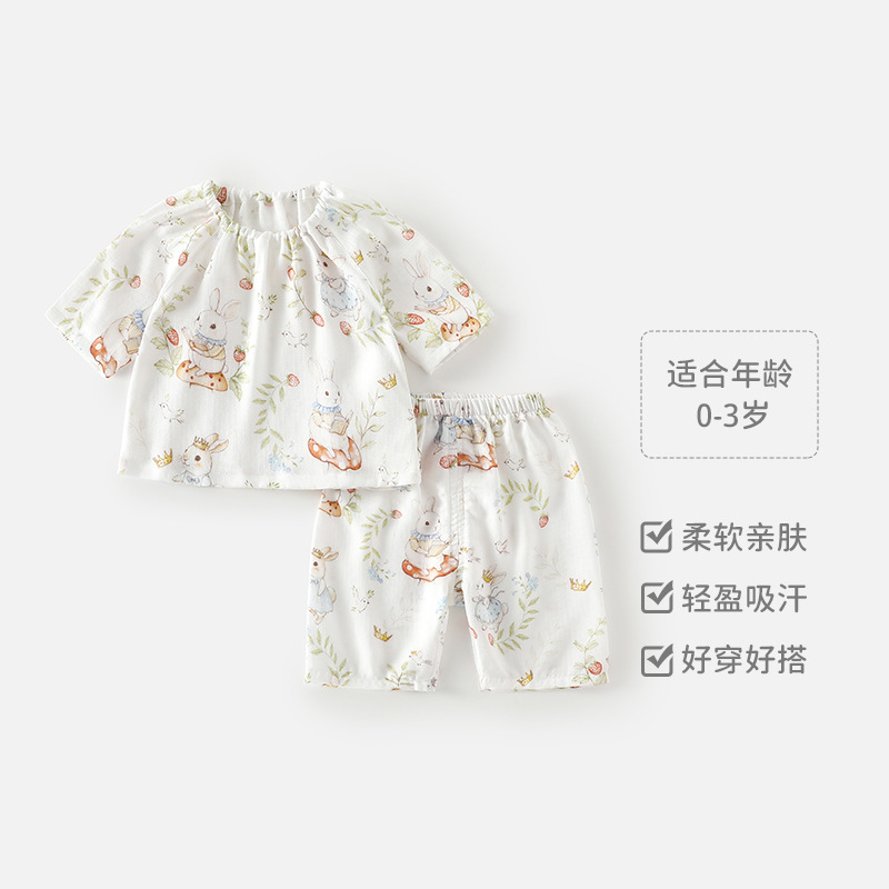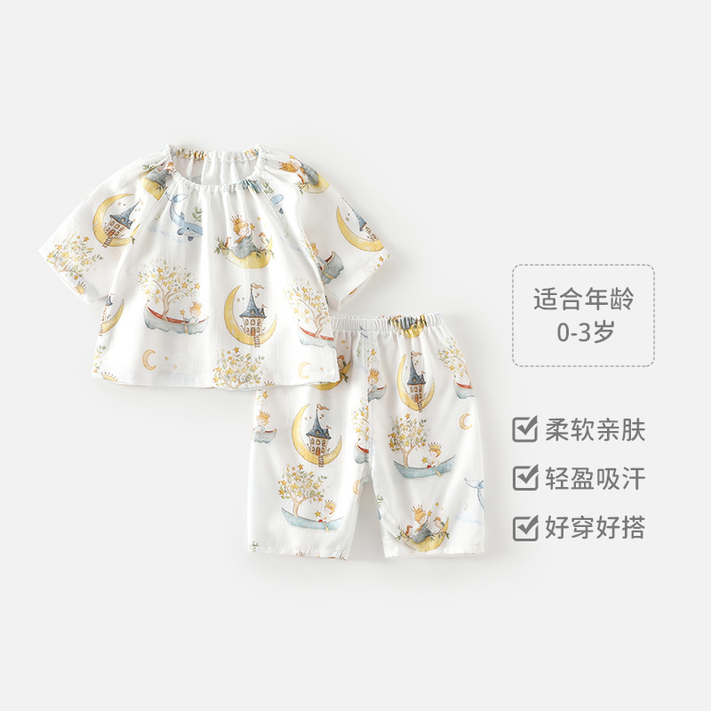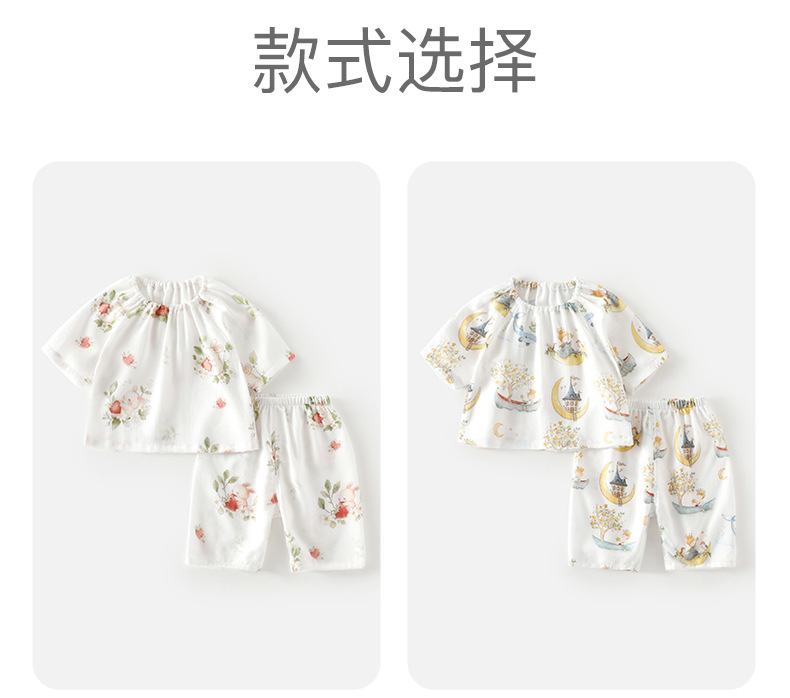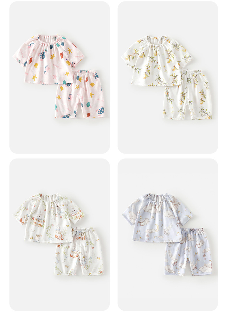 宝宝夏季薄睡衣套装男女童新款纱布空调服婴幼儿两件装儿童家居服