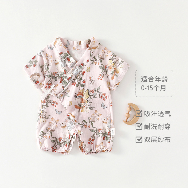 宝宝夏季纱布和服连体婴幼儿薄款短袖哈衣爬服男女童夏款透气衣服