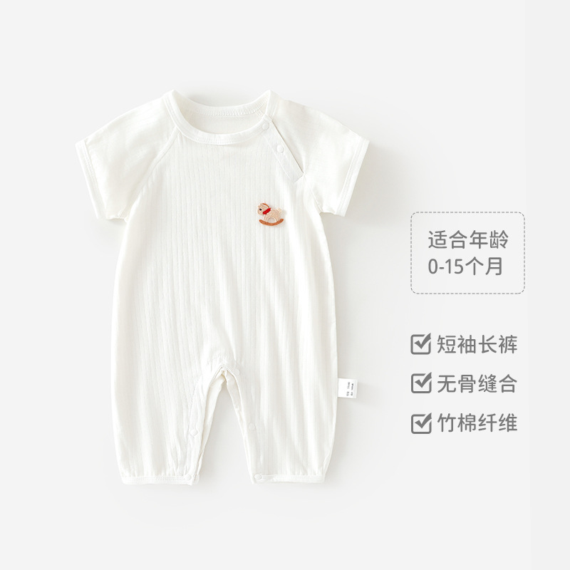 婴儿连体衣竹纤维夏季薄款宝宝短袖长裤空调服睡衣新生儿夏款爬服
