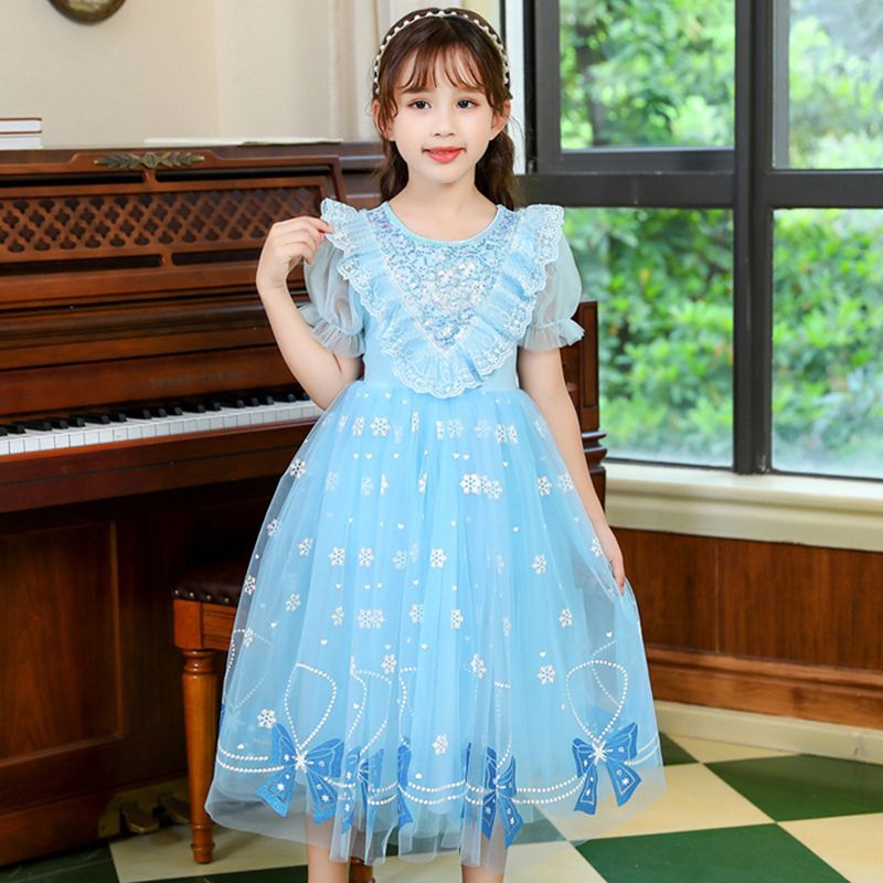 女童8夏季洋气艾莎公主裙儿童2艾莎短袖连衣裙网红爆款蓬蓬网纱裙