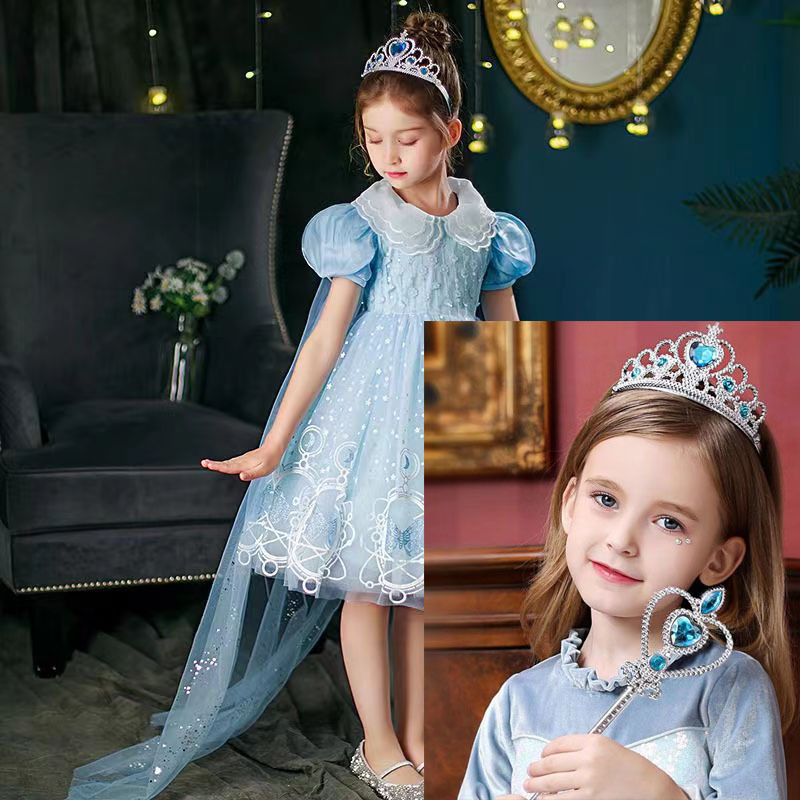 夏季女童洋气公主裙女童莎莎裙子宝宝中长式泡泡袖连衣裙演出服
