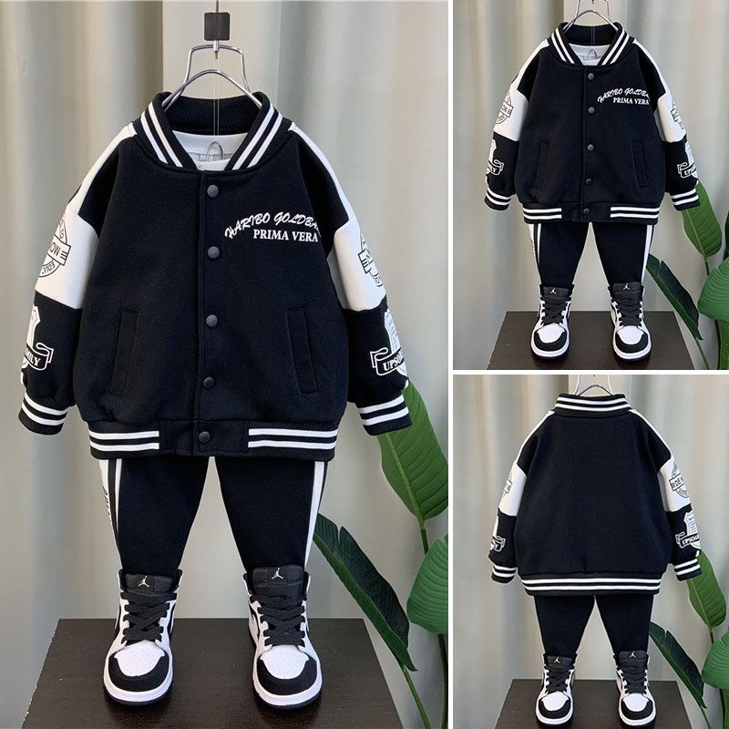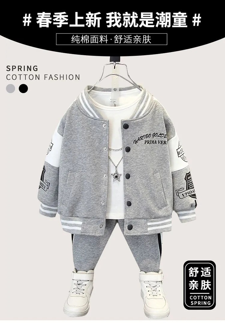 男童春装套装2025新款洋气宝宝帅气春秋季儿童棒球服运动衣服潮