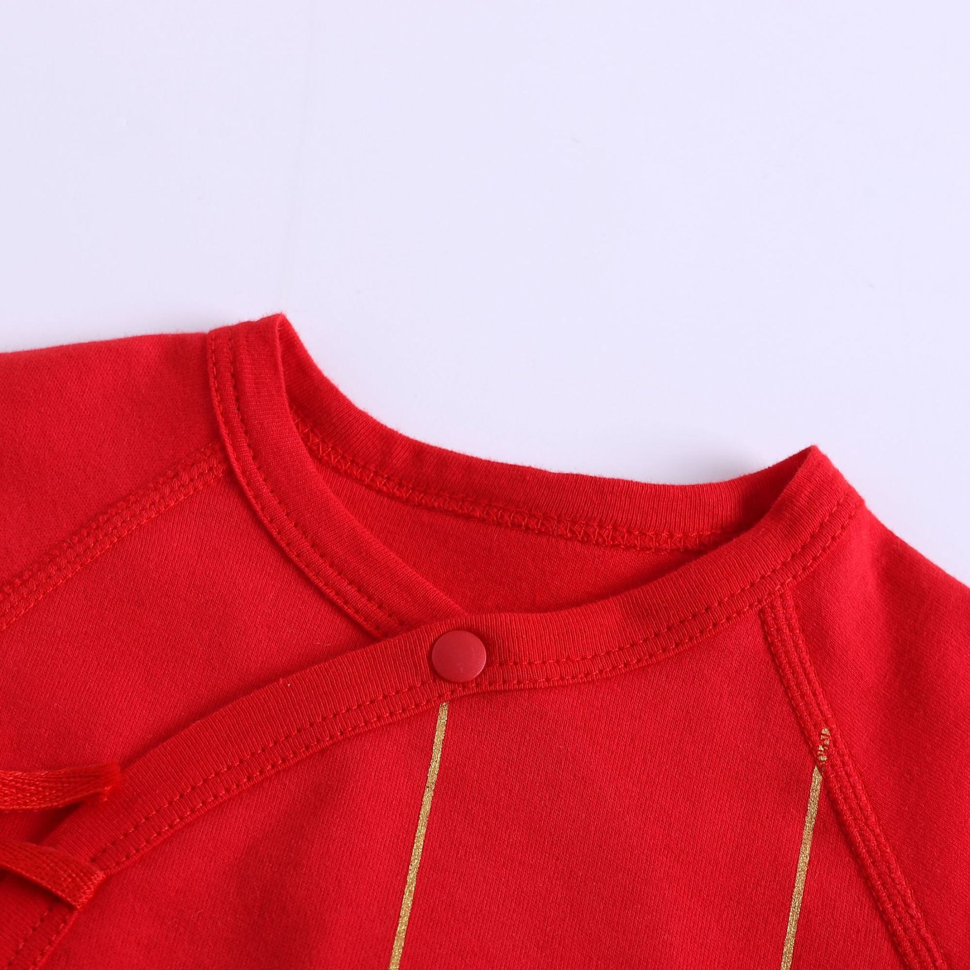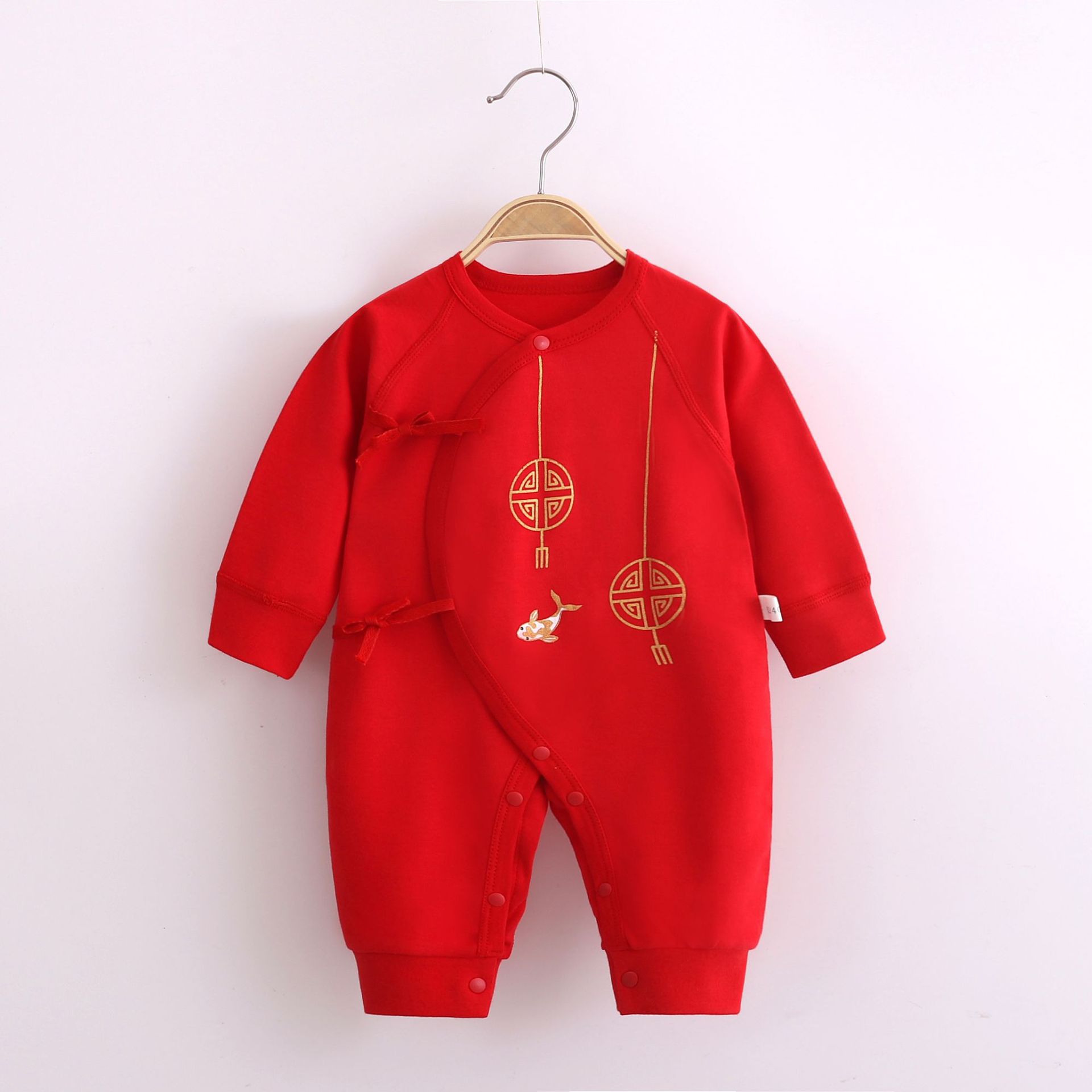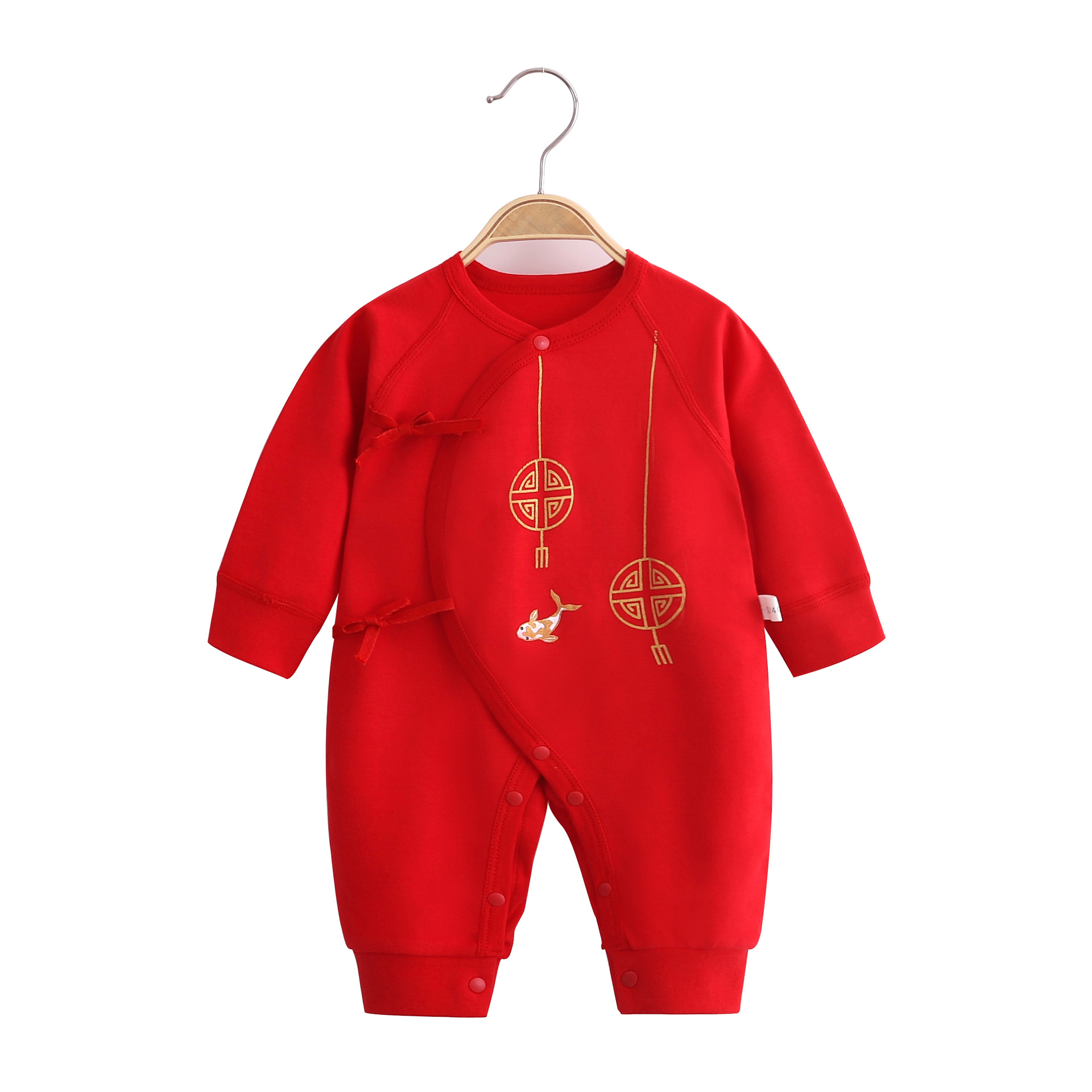 婴儿满月服男女宝宝过年大红色连体衣中国风绑带和尚服新生儿衣服