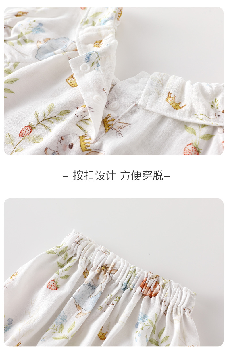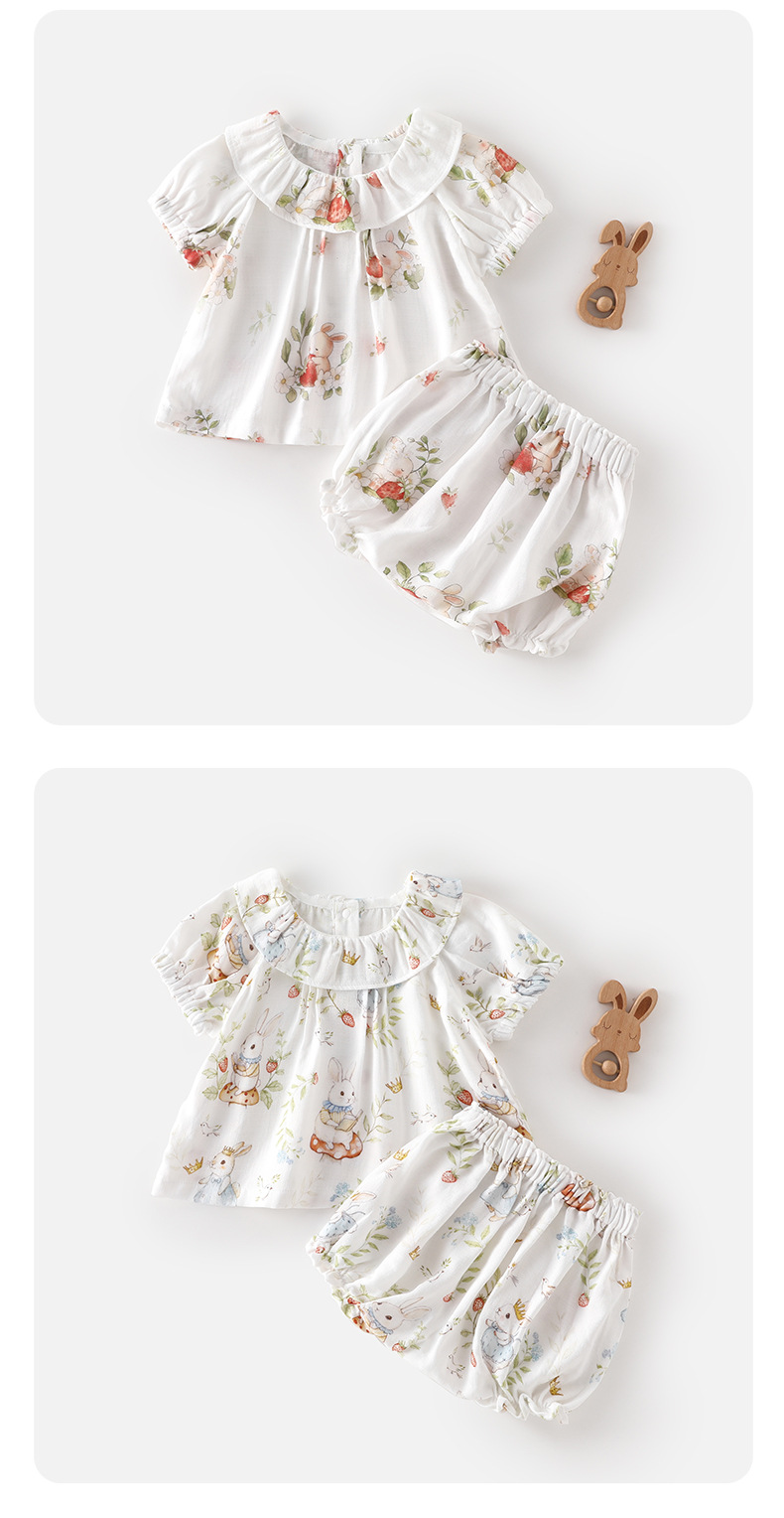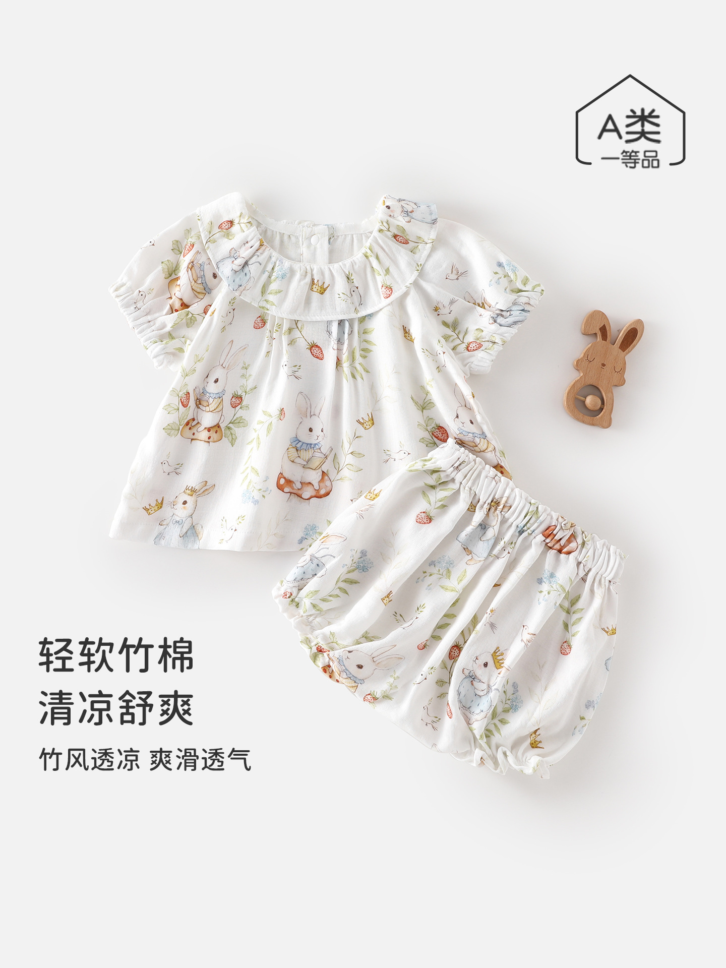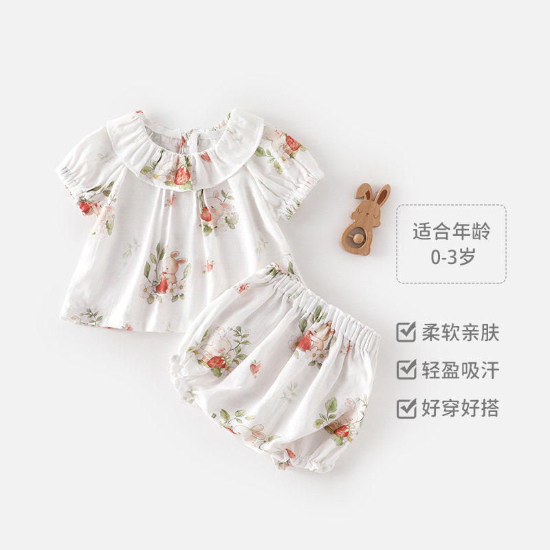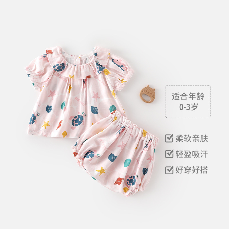 女宝宝夏季短袖薄款套装婴儿透气吸汗纱布衣服儿童夏天短裤外出服