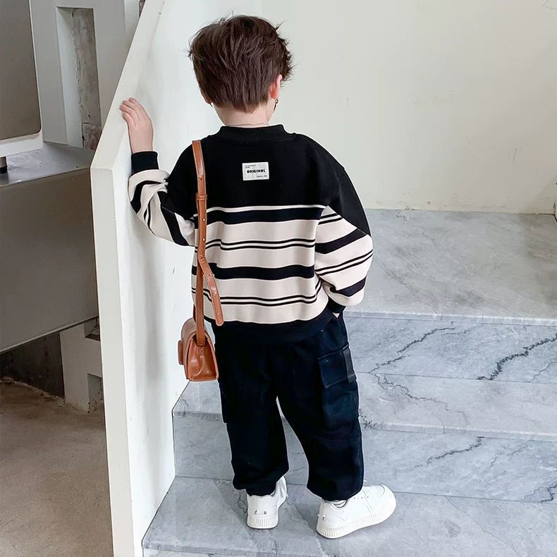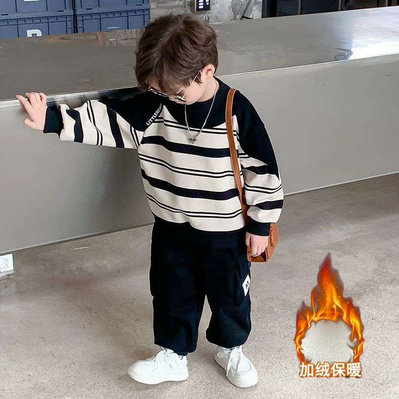 男童一体绒痞帅卫衣长裤套装2025新款冬装儿童时尚帅气潮流两件套