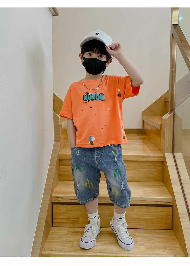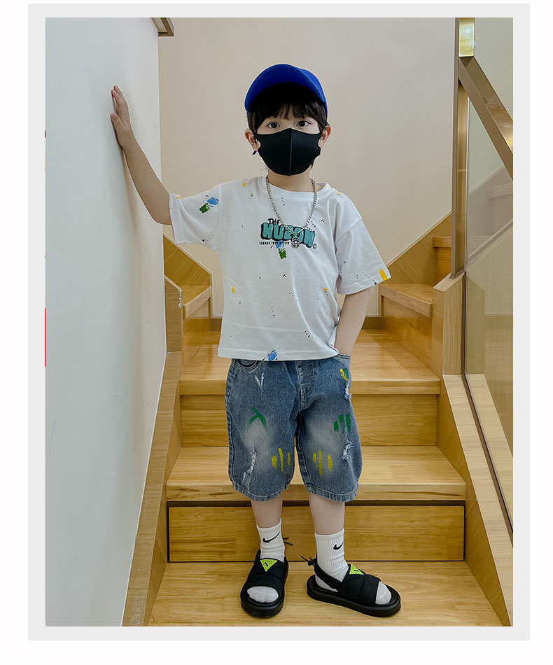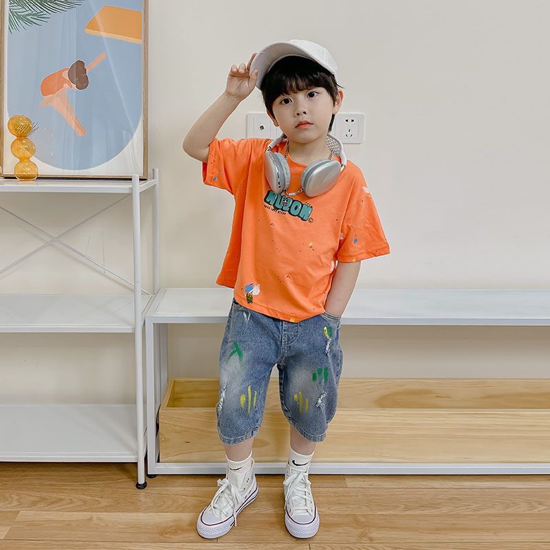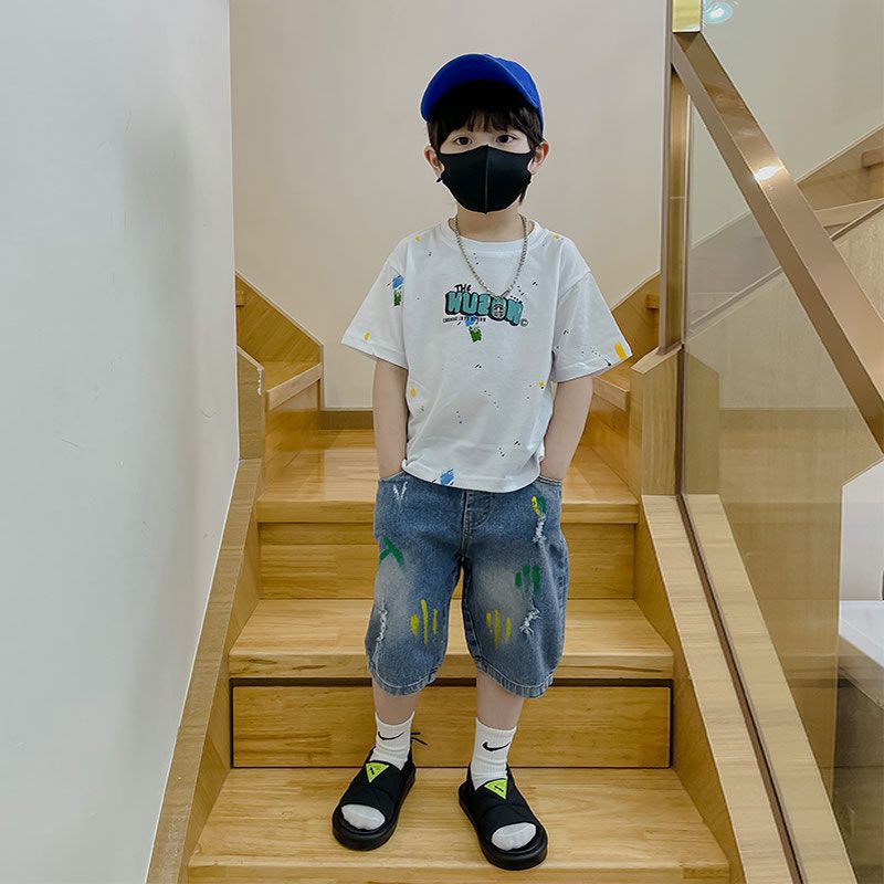 男童夏装短袖套装2025新款夏季男童休闲时尚儿童运动牛仔帅气潮装