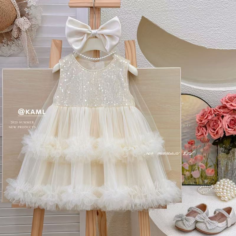直播供货2025女宝宝新款发卡连衣裙儿童甜美洋气纱裙夏装外贸批发
