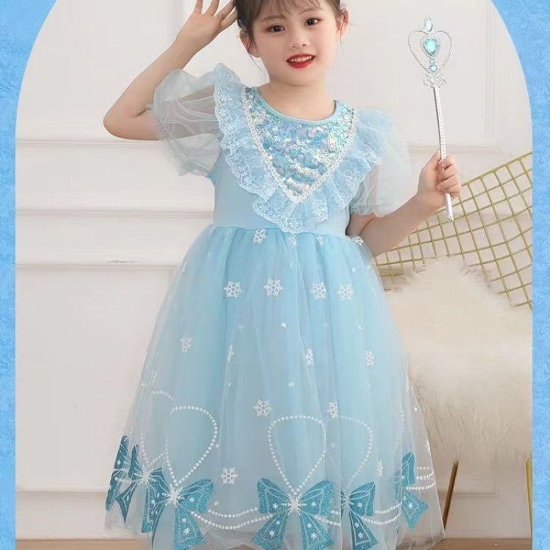 女童夏装连衣裙艾莎公主新款儿童洋气宽松童装女孩夏季中长款时尚