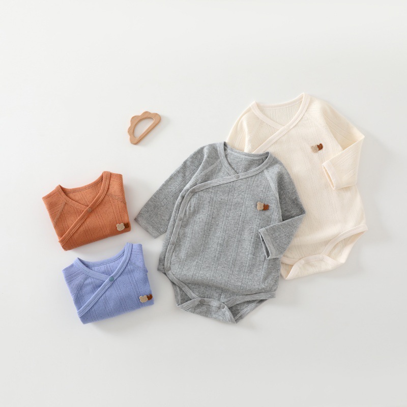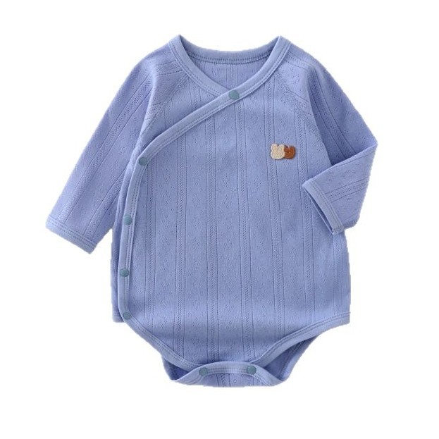 婴儿包屁衣夏季薄款纯棉提花宝宝三角哈衣长袖空调服新生儿连体衣