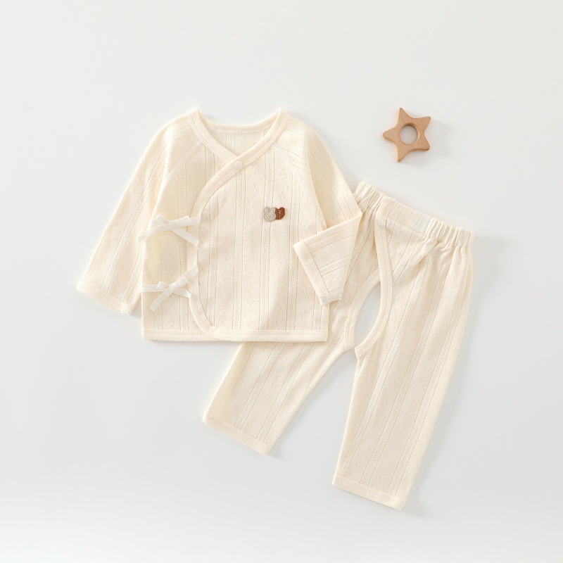 轻薄夏款提花婴儿魔术贴宝宝套(开裆)100%棉A类无骨婴儿贴身衣