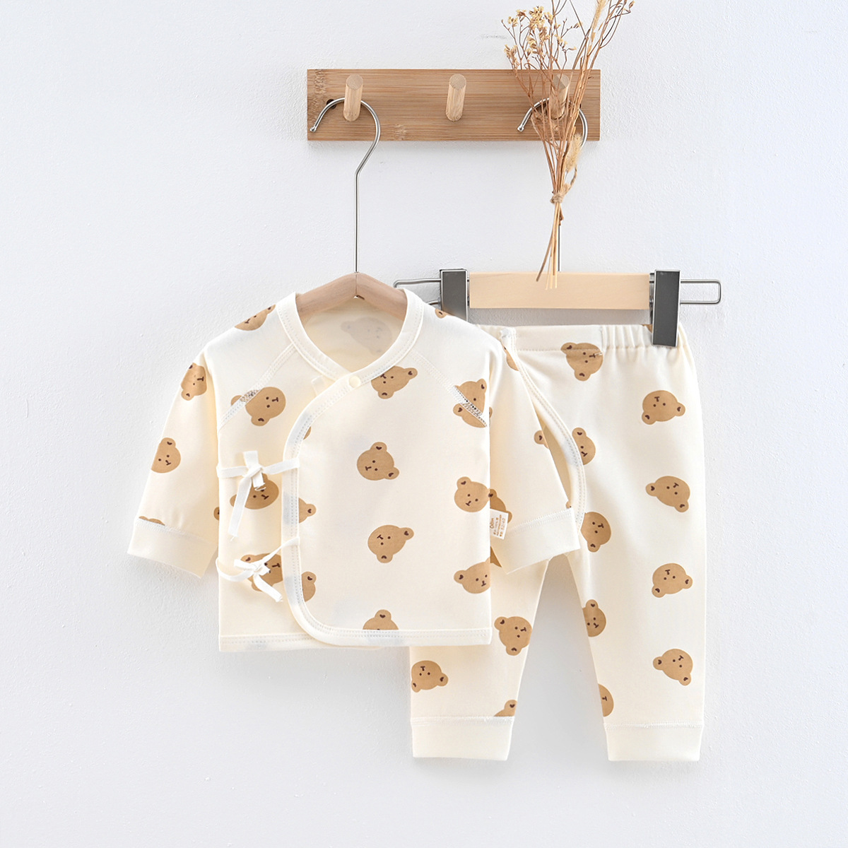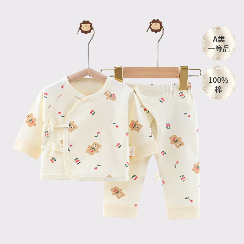 批发新生儿和尚服两件套纯棉宝宝魔术贴开裆秋衣秋裤婴儿内衣套装