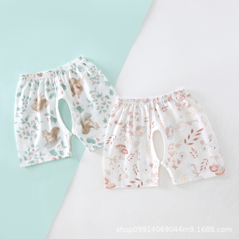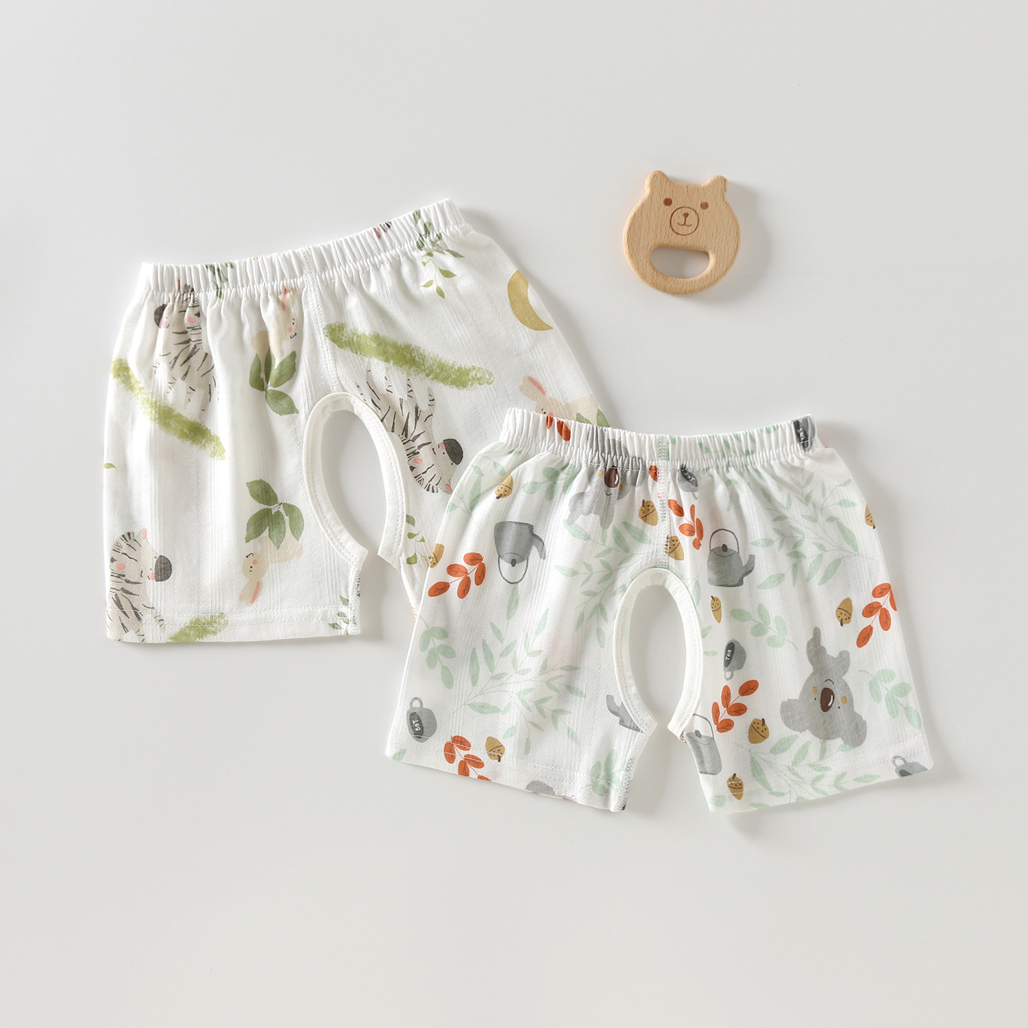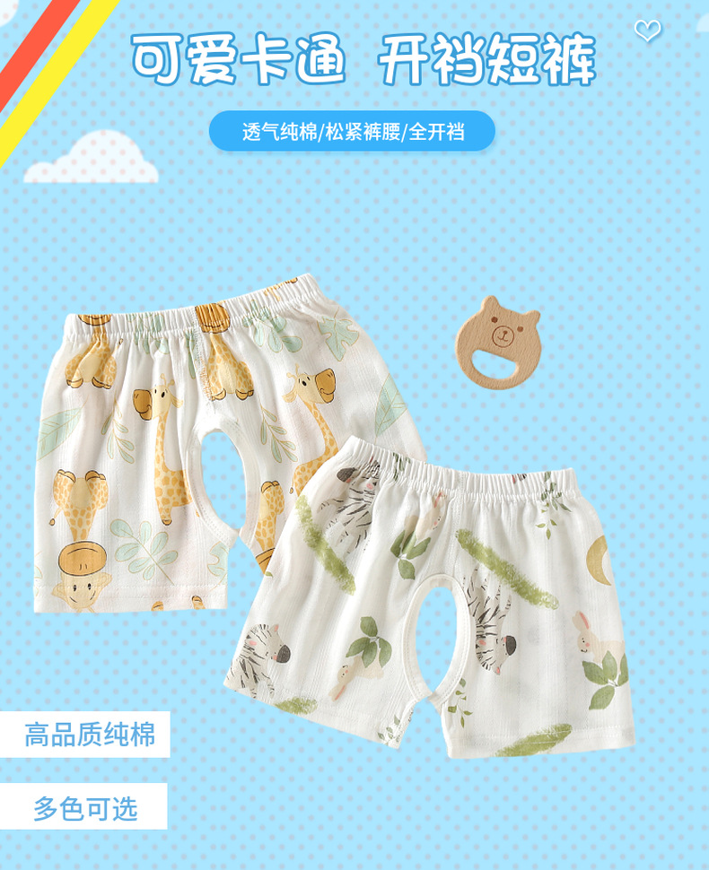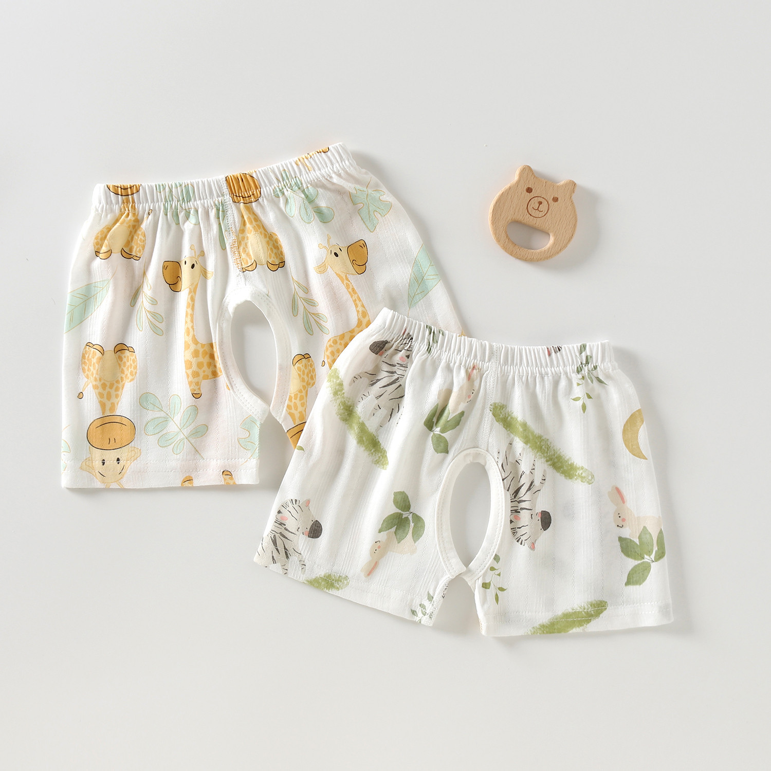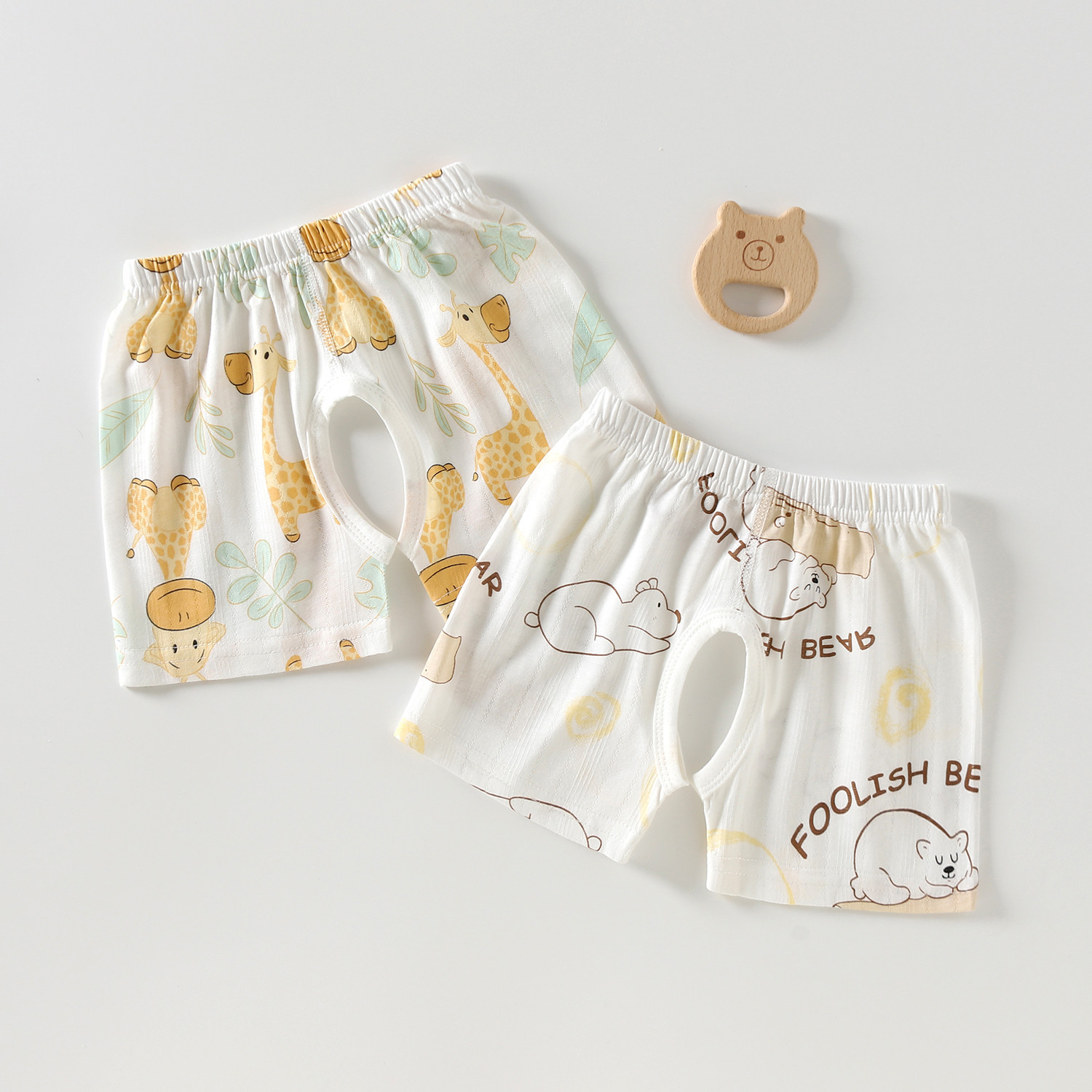 【2件装】男女儿童夏季纯棉薄款开裆裤宝宝短裤夏装婴儿无骨裤子