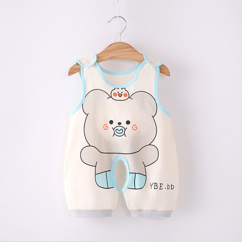 婴儿连体衣薄款夏季无袖男女宝宝开裆新生儿哈衣服3个月0-1岁
