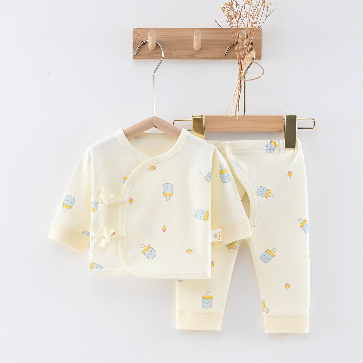 四季款新生儿套装纯棉魔术贴开裆套秋衣秋裤婴儿A类无骨100%棉