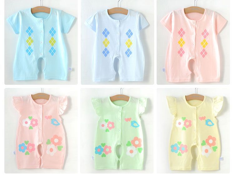 婴儿连体衣服新生儿夏季短袖哈衣0女宝宝夏装男1岁6薄款3个月纯棉