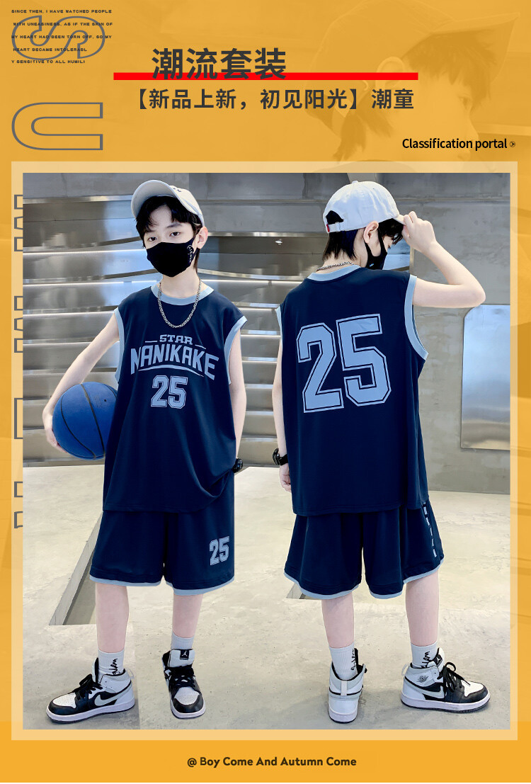 新男童无袖背心套装2025款夏季中大儿童痞帅休闲帅气潮装TZ-7187