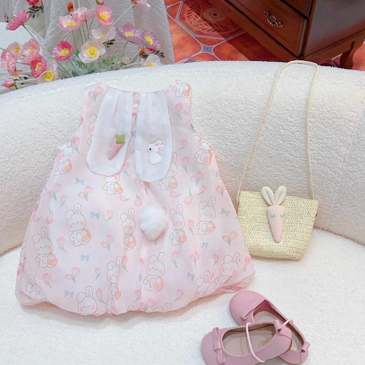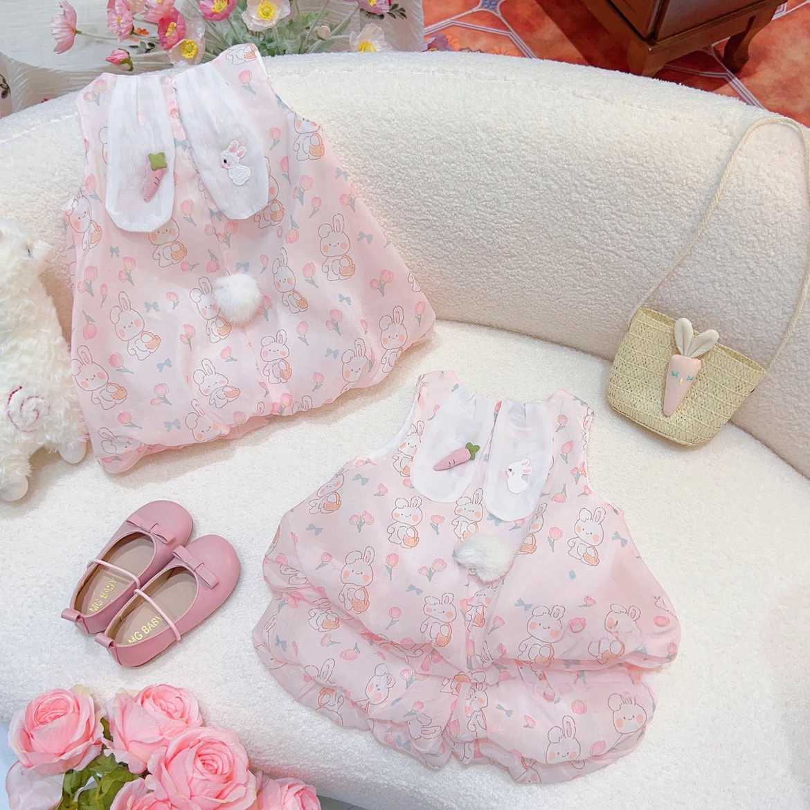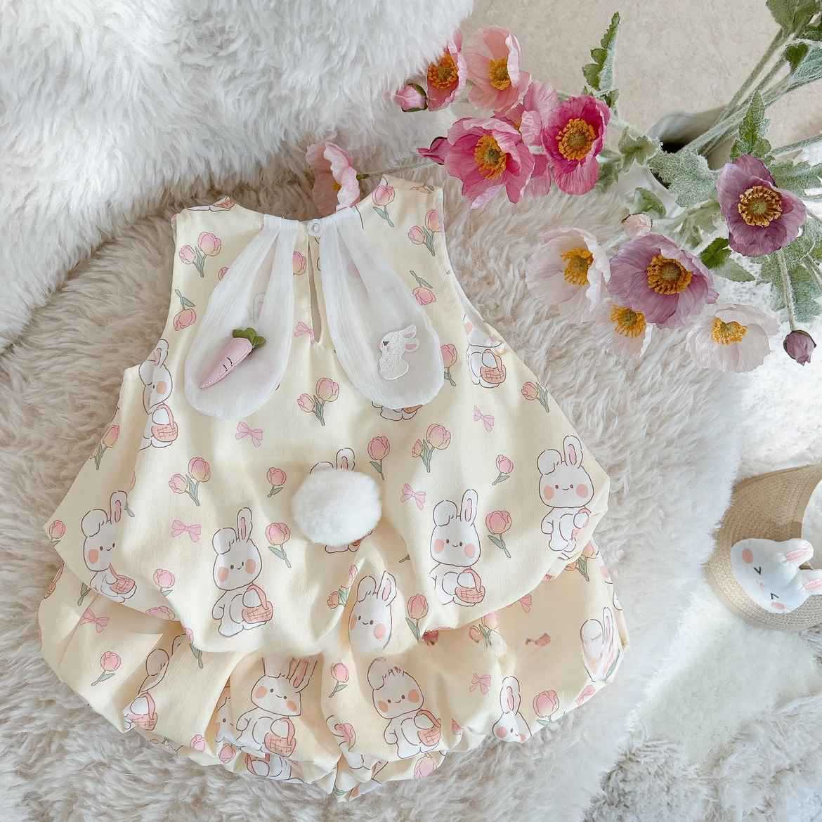 女童套装夏装2025新款儿童时髦洋气背心宝宝夏季薄款兔耳朵两件套