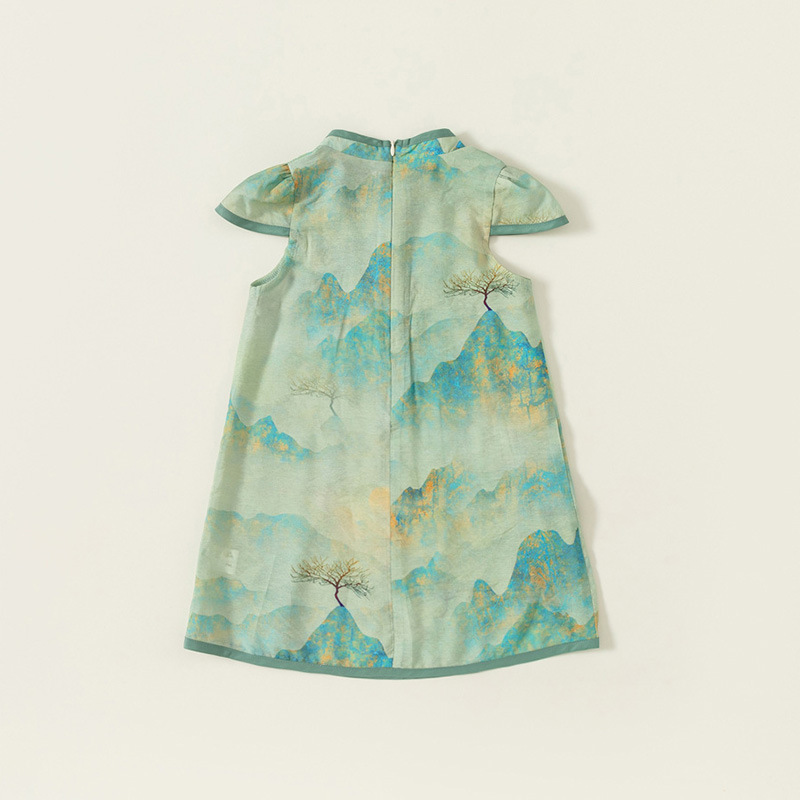 女童中国风旗袍裙2025夏季新款山水画连衣裙宝宝夏装公主裙