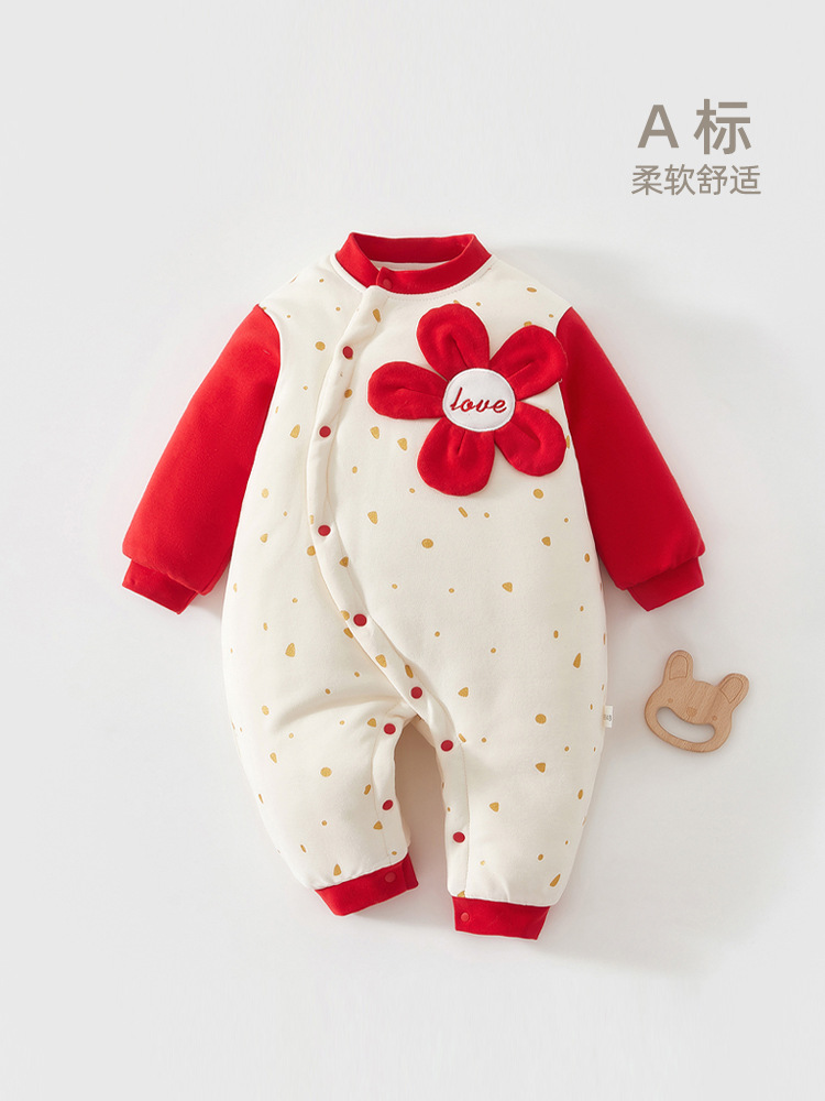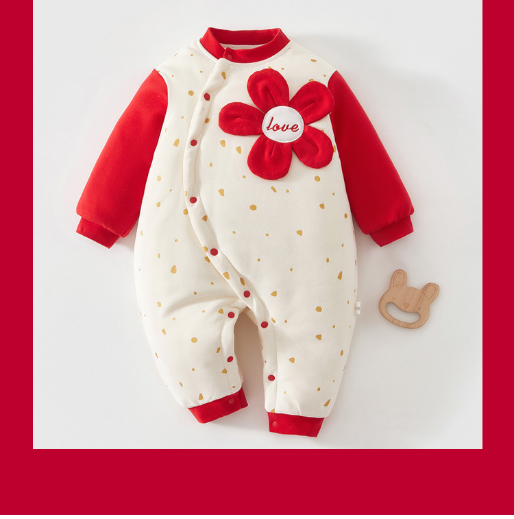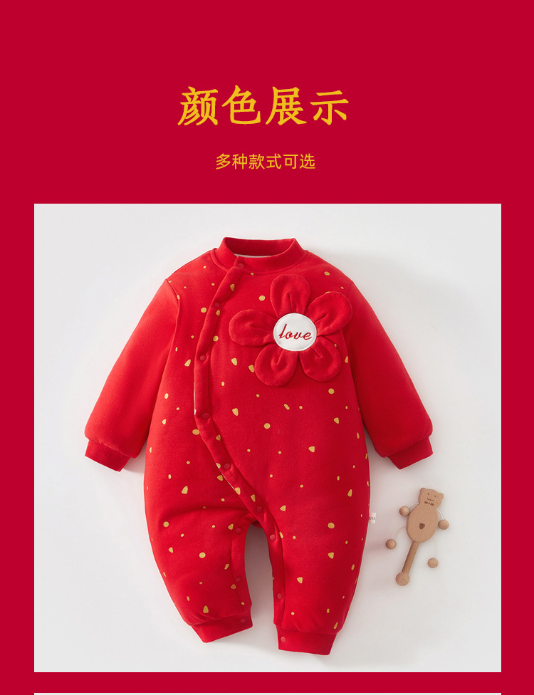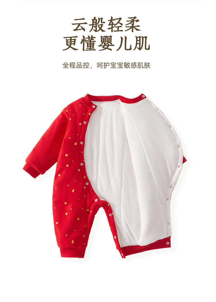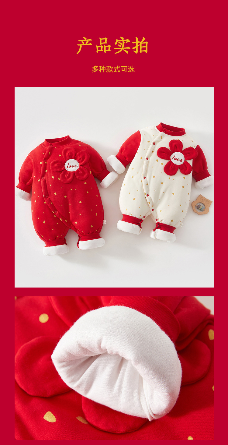 新生婴儿衣服连体衣婴幼儿哈衣爬服百天月子服夹棉男女宝宝拜年服