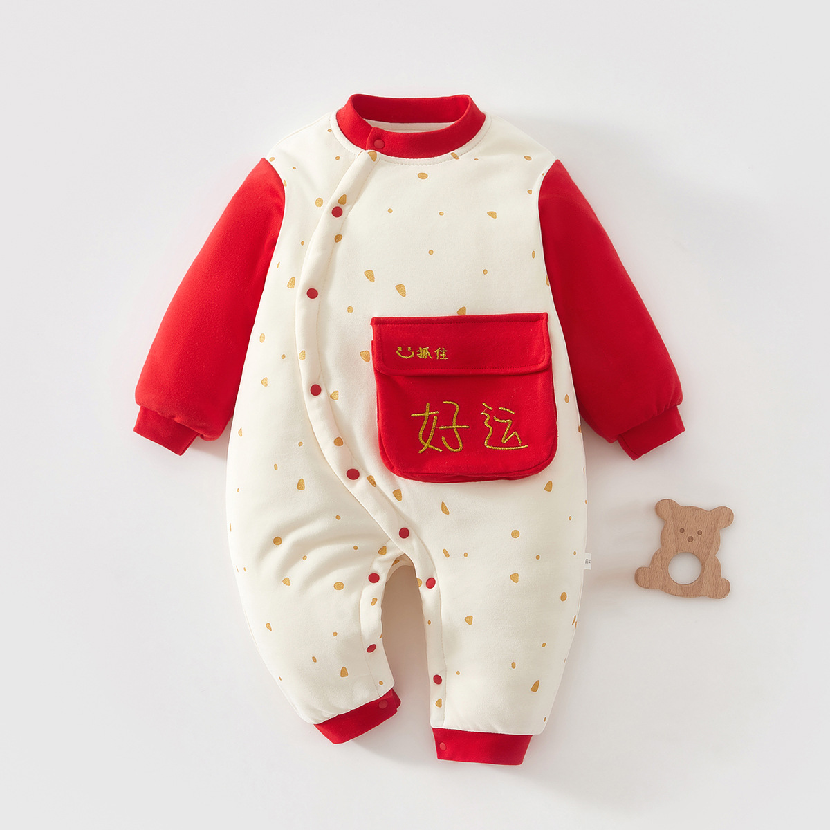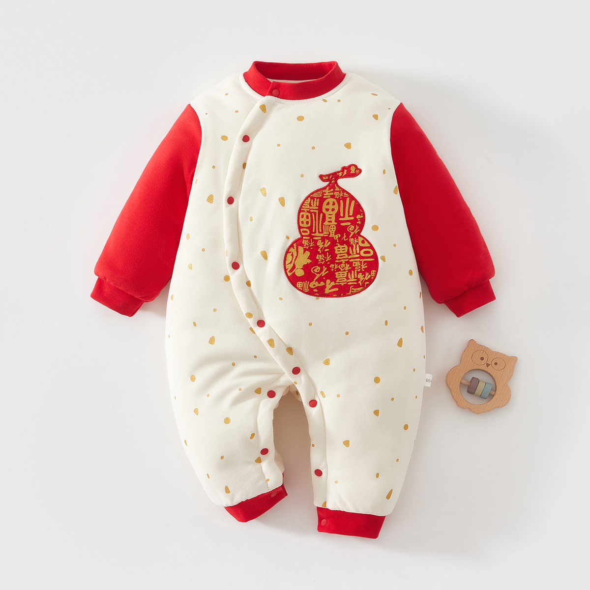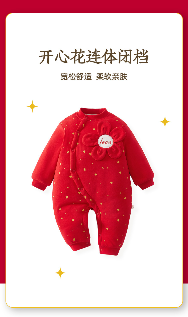 新生婴儿衣服连体衣婴幼儿哈衣爬服百天月子服夹棉男女宝宝拜年服