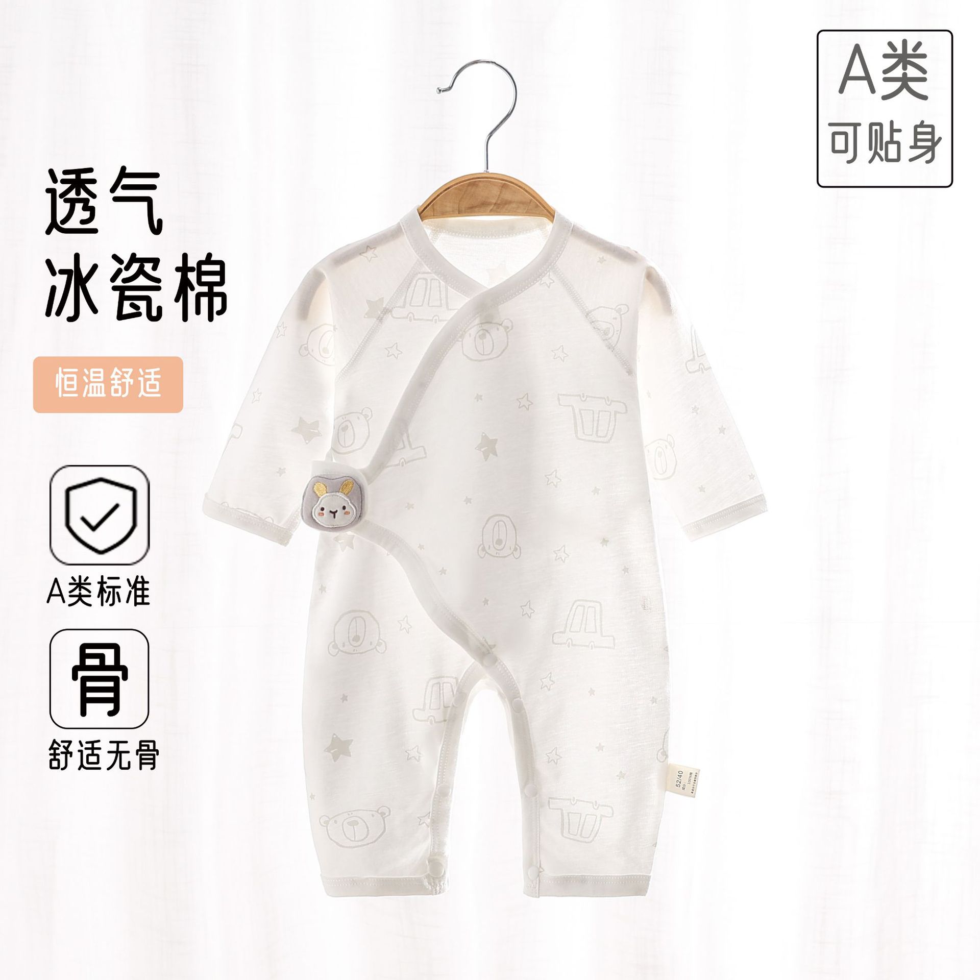 夏季新生儿连体衣婴儿纯棉薄款无骨衣服哈衣长袖宝宝夏款空调服