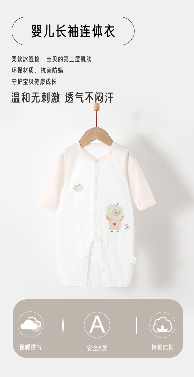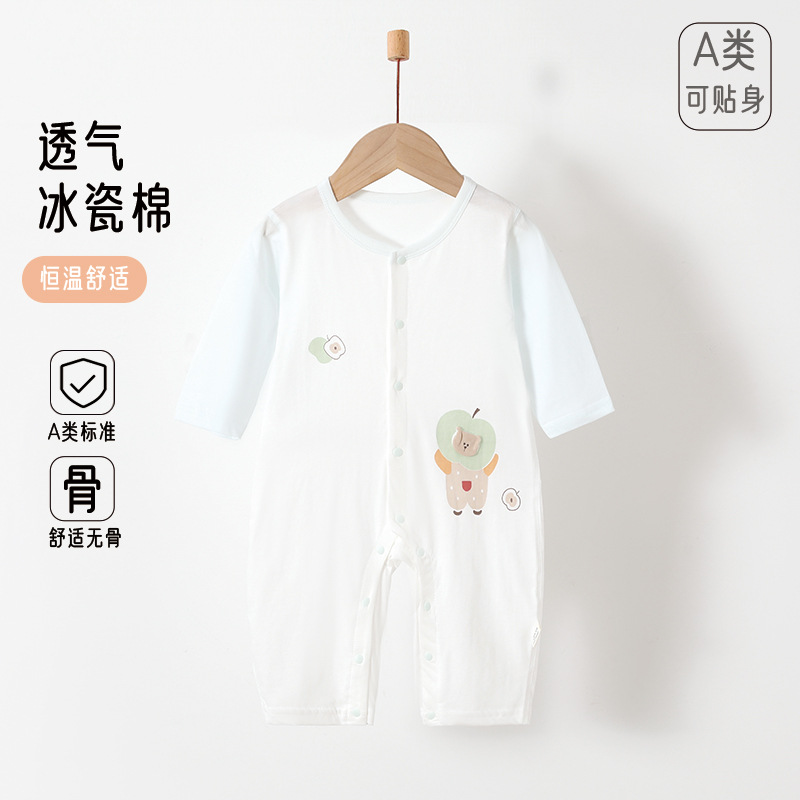 婴儿夏季冰瓷棉超薄连体衣长袖纯棉衣服卡通服装男女宝宝哈衣爬服