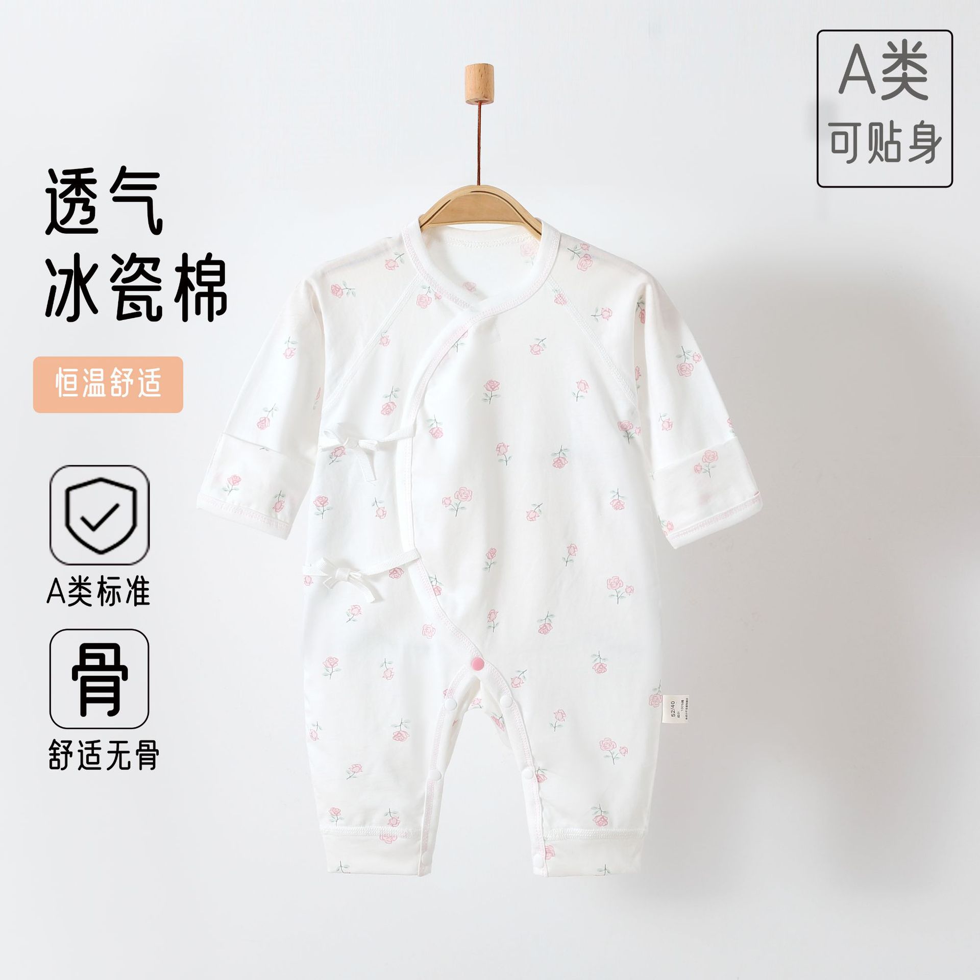 新生儿夏季超薄纯棉无骨长袖连体衣睡衣婴儿爬服男女宝宝空调哈衣