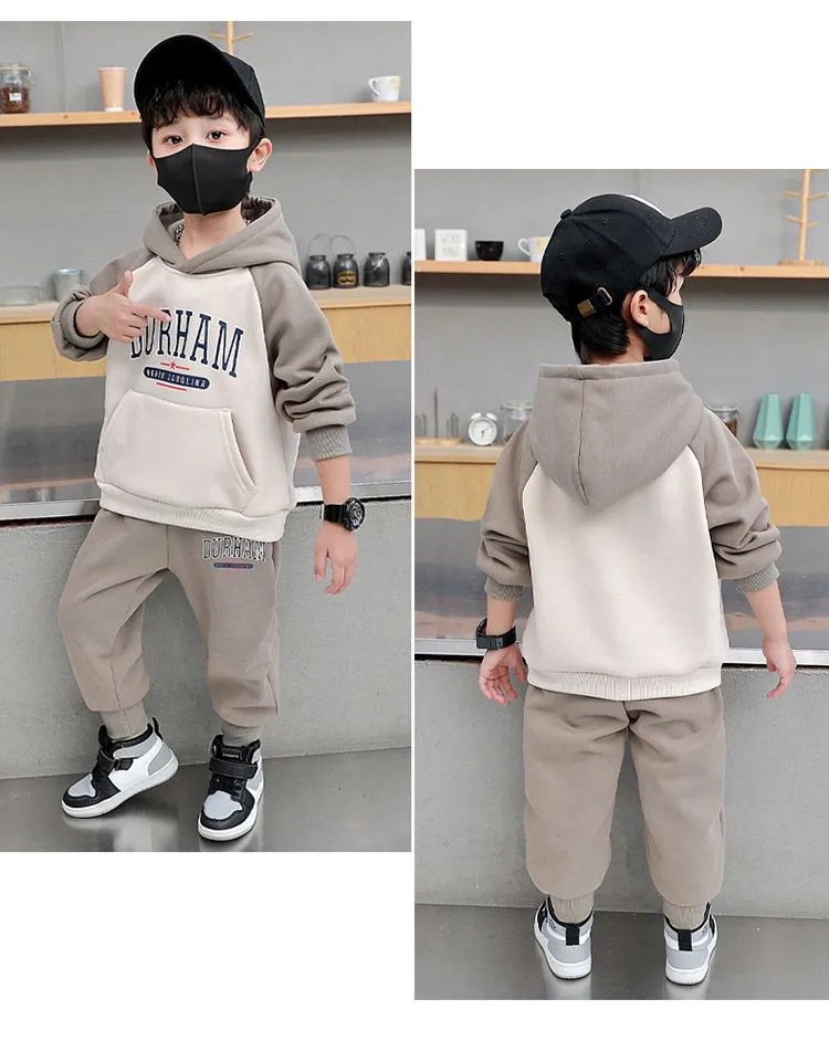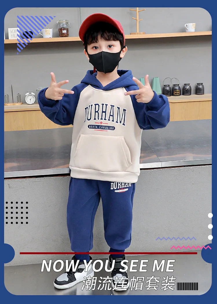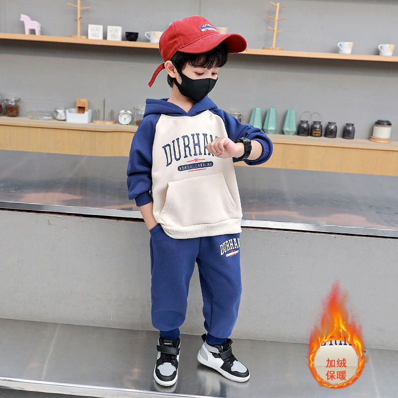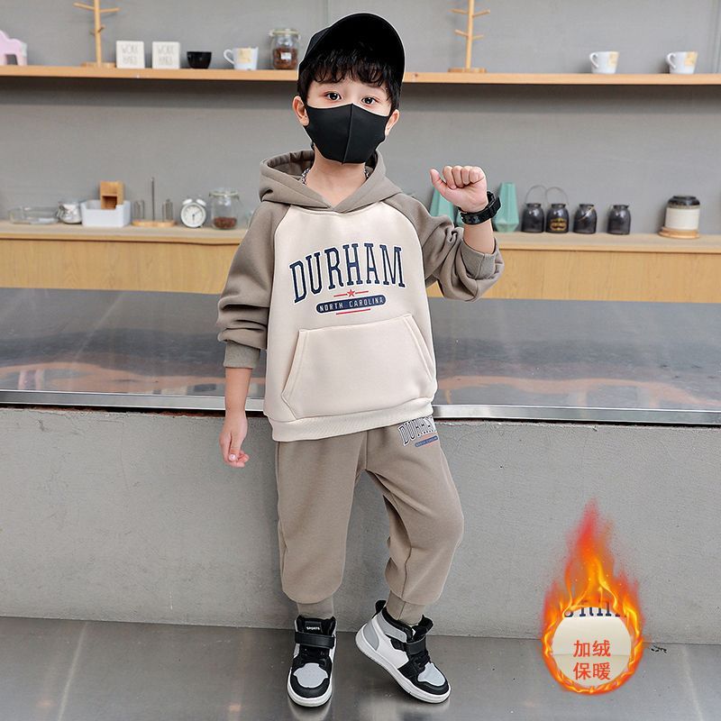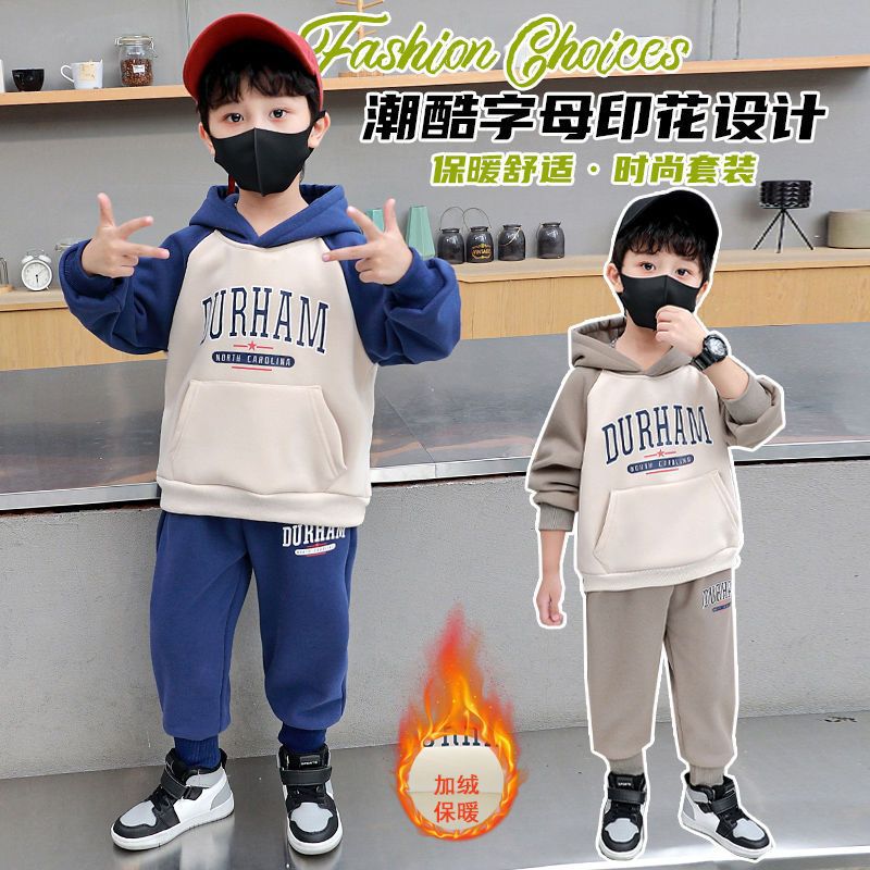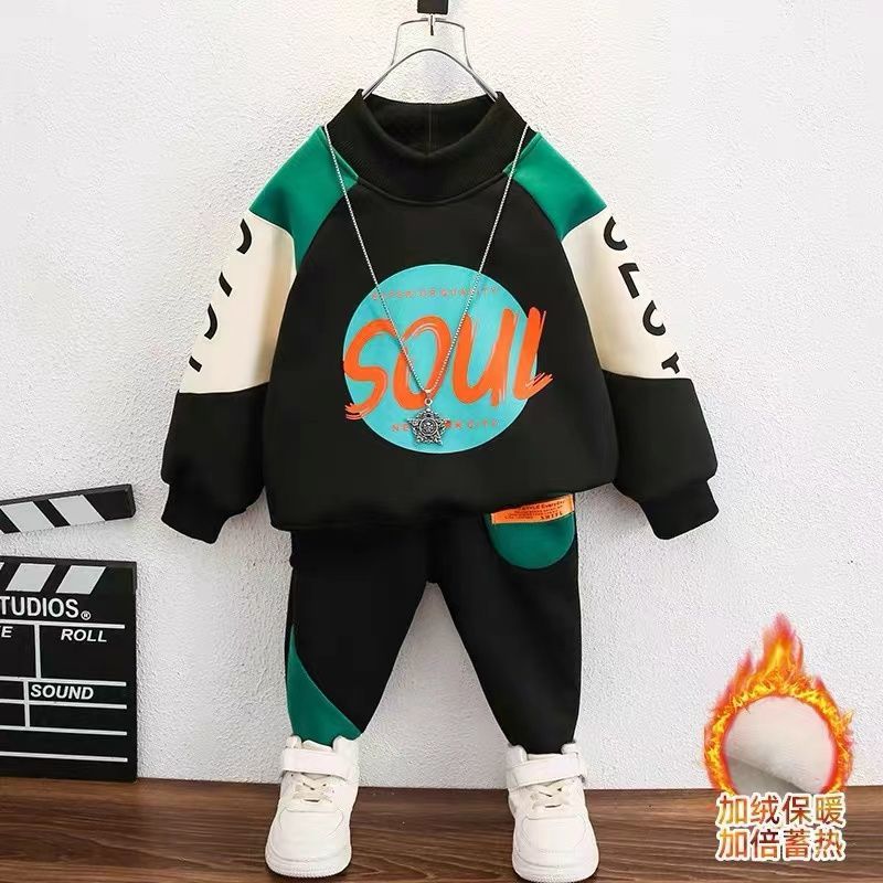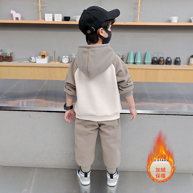 男童加绒套装2025新款洋气儿童帅气保暖衣服男宝宝洋气秋冬两件套