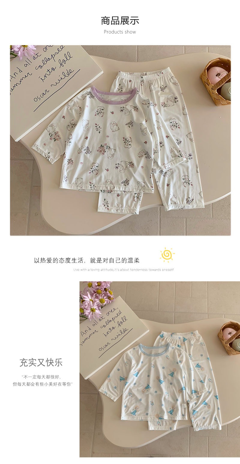 儿童睡衣防着凉儿童空调服七分袖家居服天丝优可丝儿童服装拿货