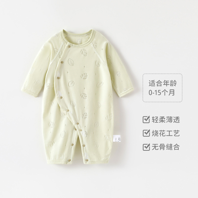 婴儿夏季长袖连体衣男女童烧花透气空调服新生宝宝满月百天爬爬服
