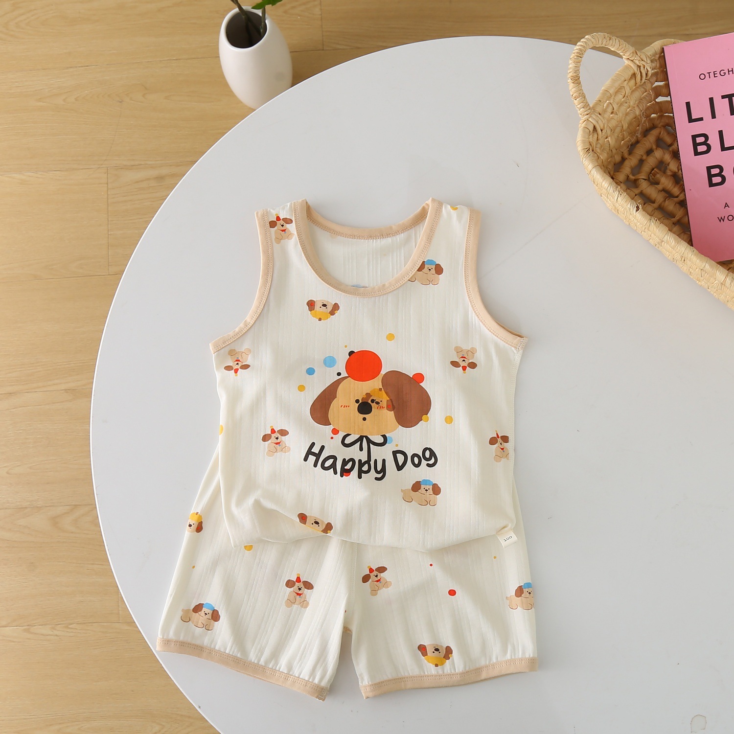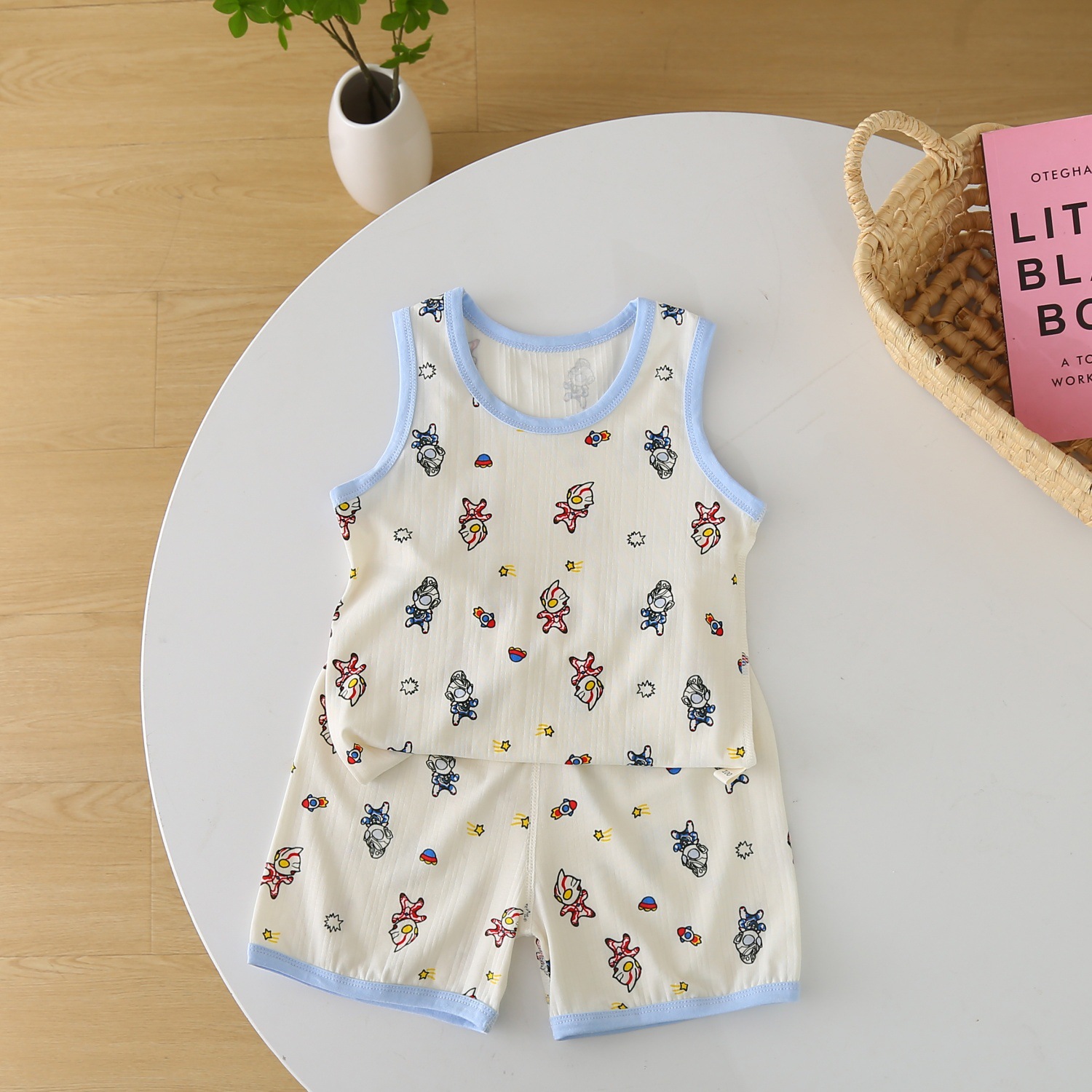 儿童背心套装宝宝薄款抽针无袖短裤两件套男女卡通莫代尔棉家居服