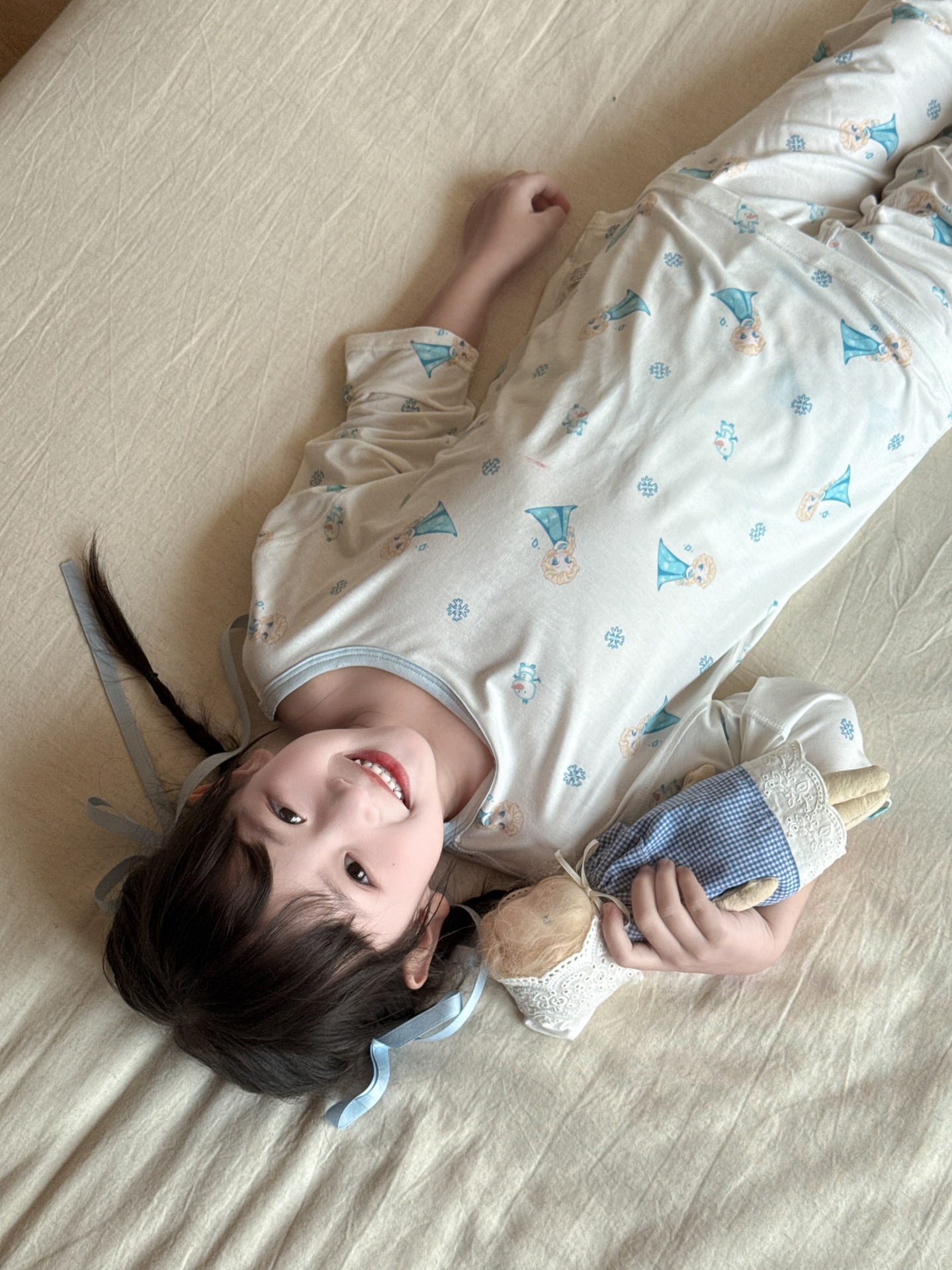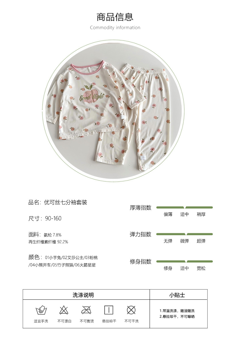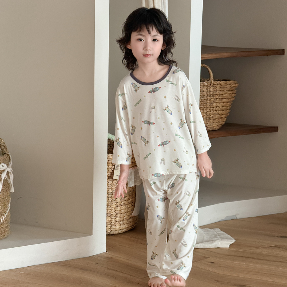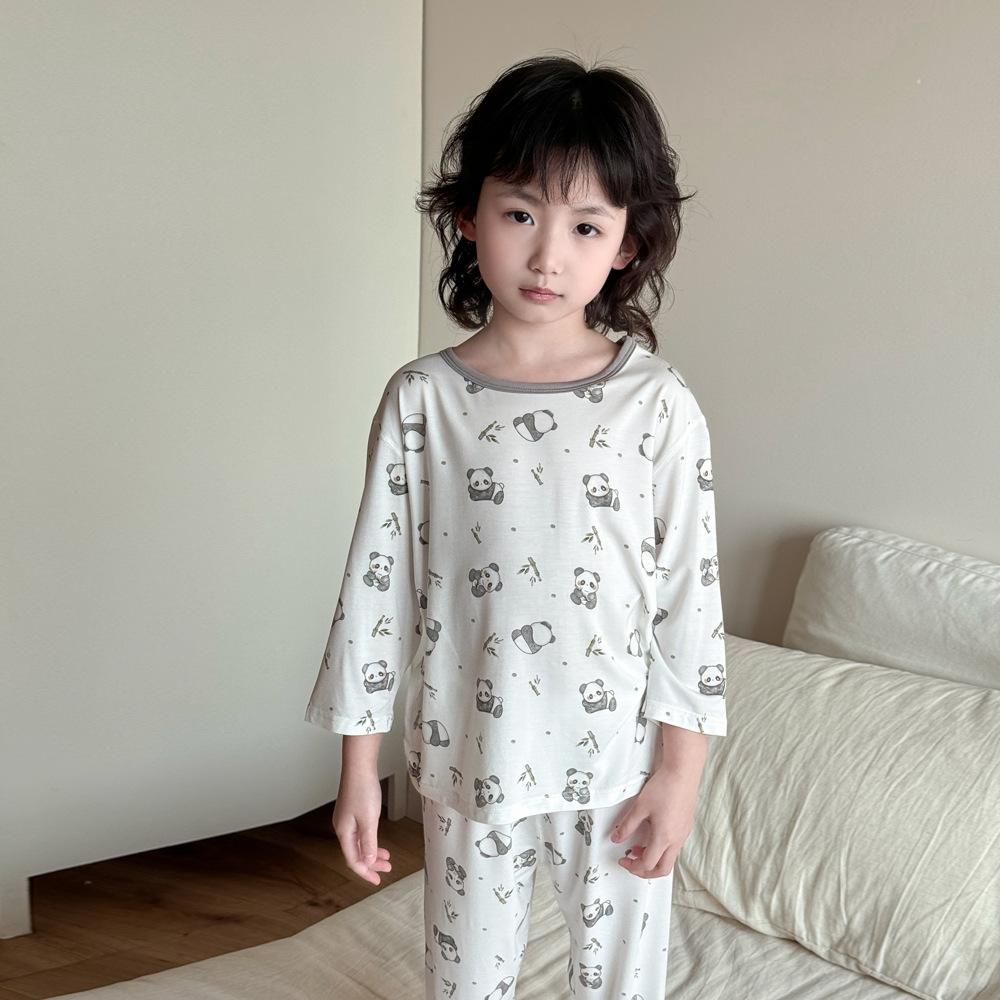 儿童冰丝凉感睡衣防着凉儿童空调服七分袖九分裤女童家居服套装男
