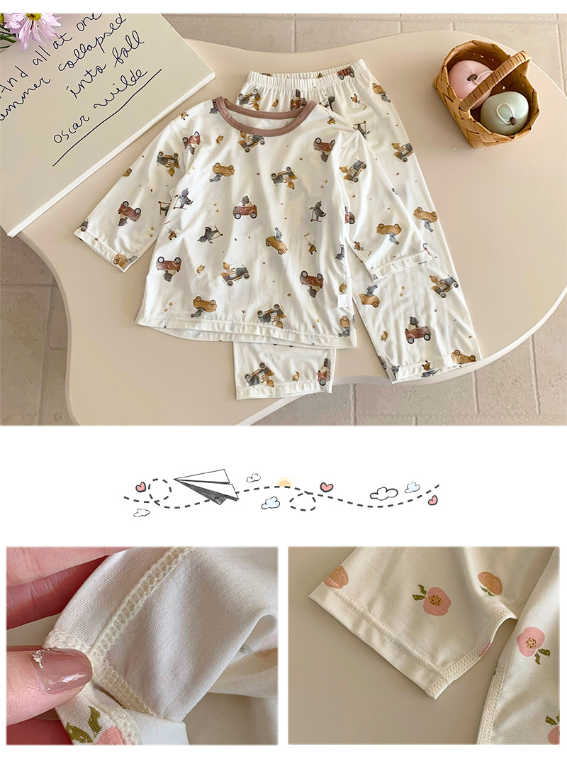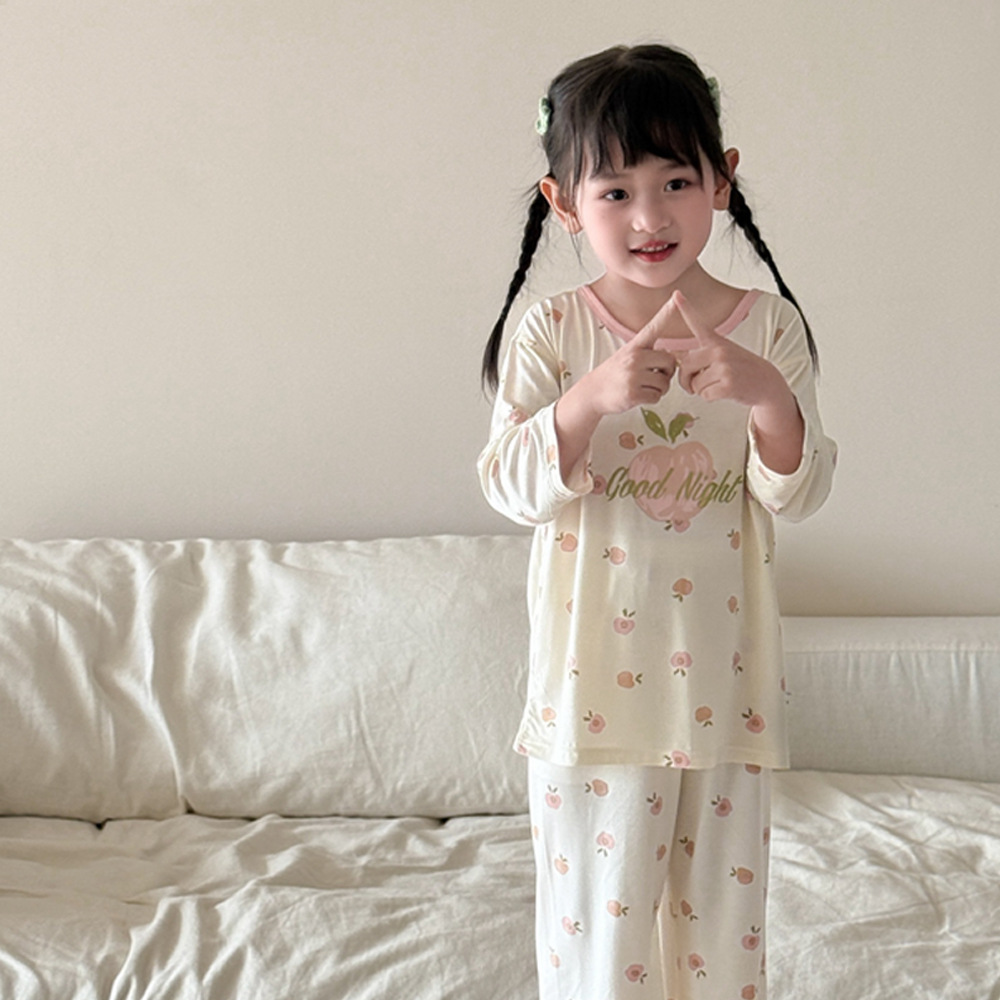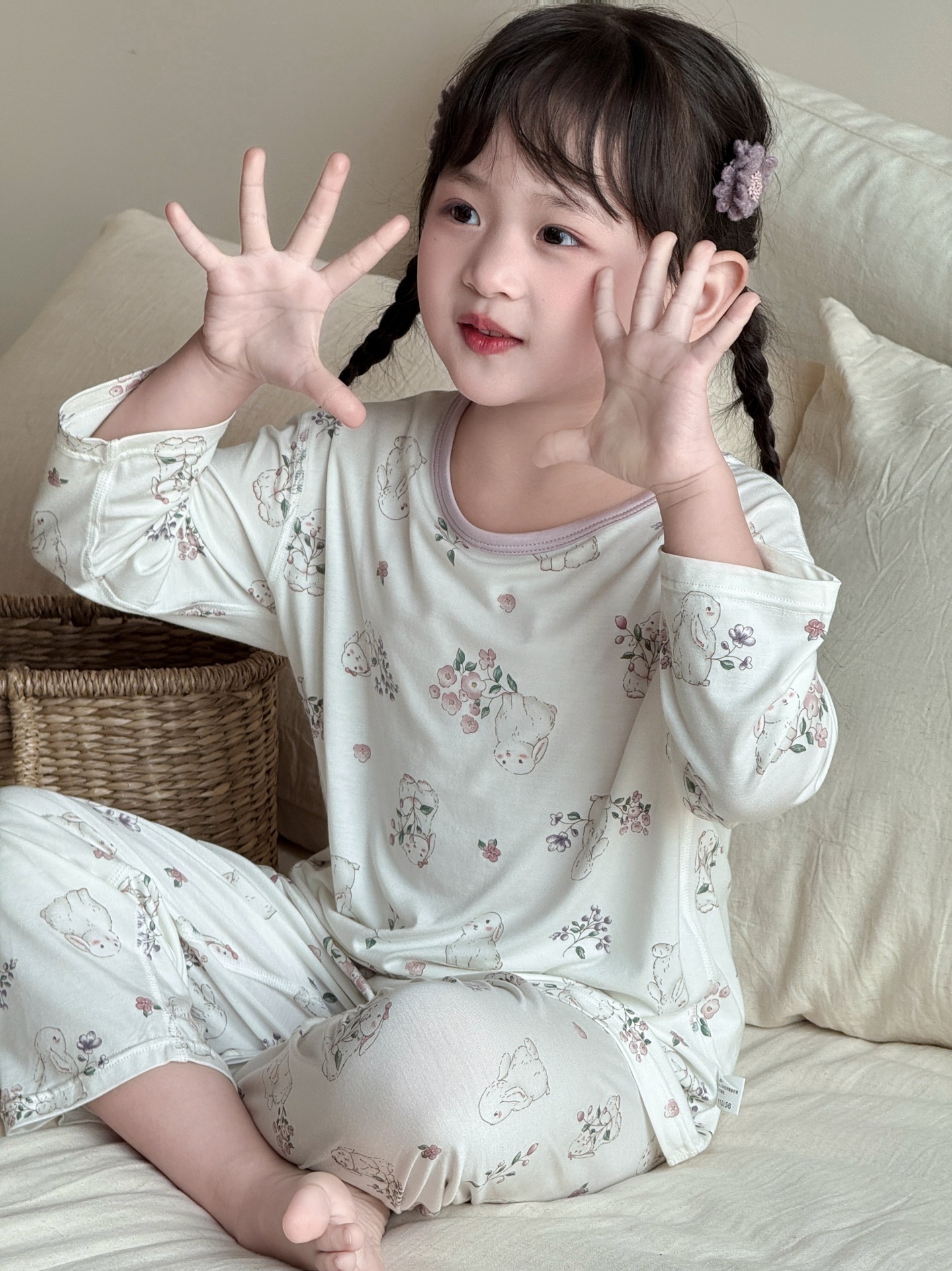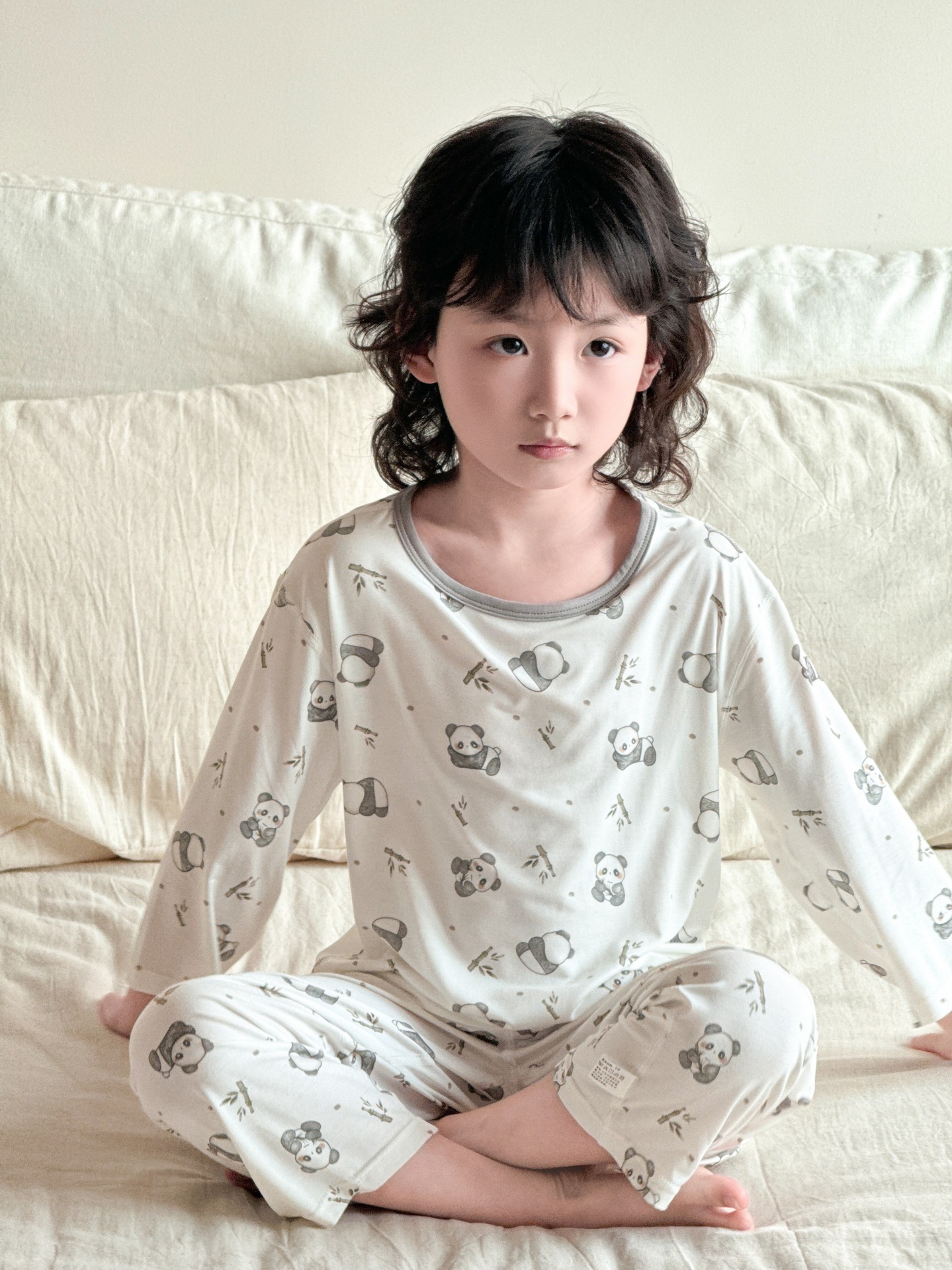 儿童冰丝凉感睡衣防着凉儿童空调服七分袖九分裤女童家居服套装男