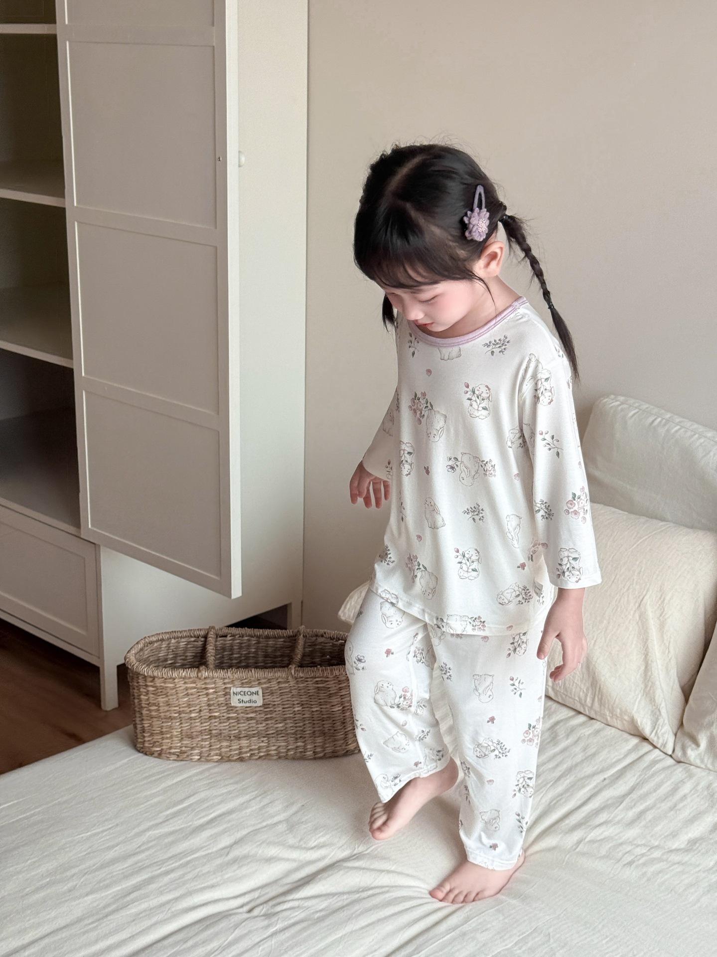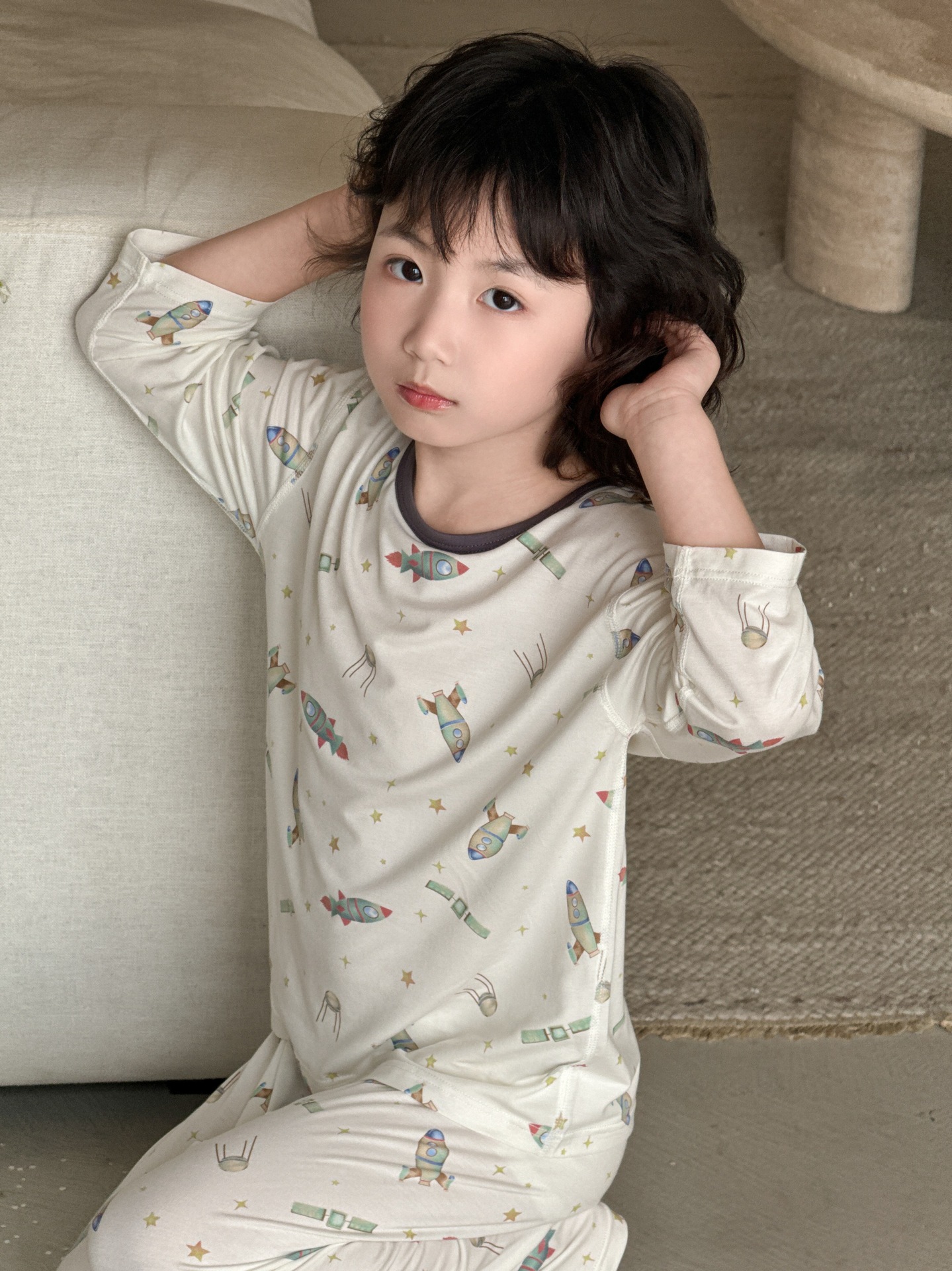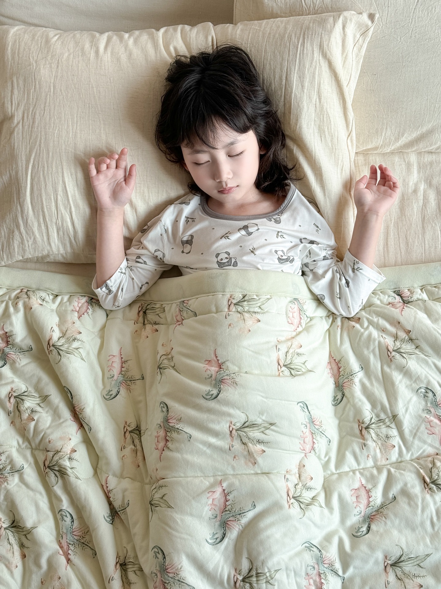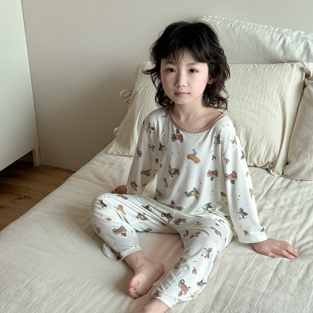儿童冰丝凉感睡衣防着凉儿童空调服七分袖九分裤女童家居服套装男