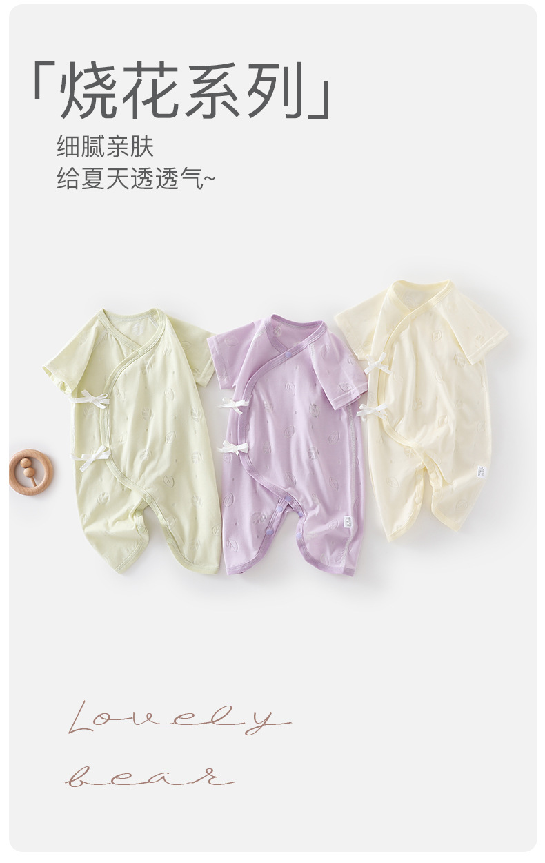 新生儿夏季短袖蝴蝶衣宝宝烧花薄款护肚哈衣和尚服婴幼儿空调服