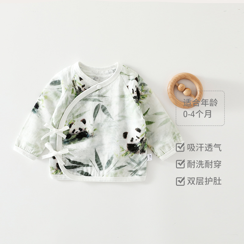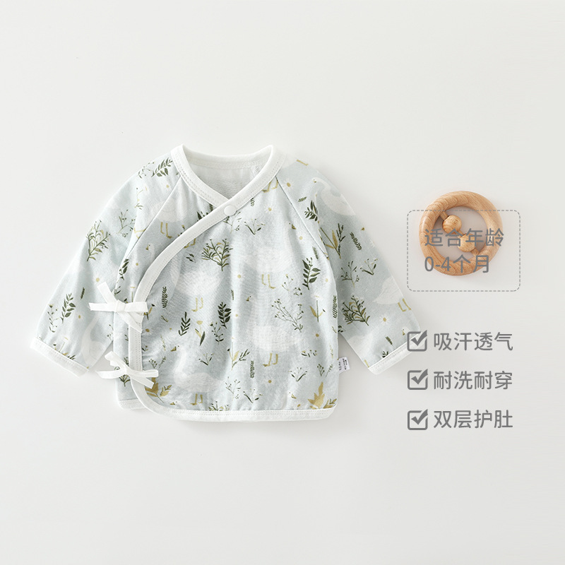 新生婴儿半背衣夏季薄款衣服初生满月宝宝纱布半背上衣透气空调服