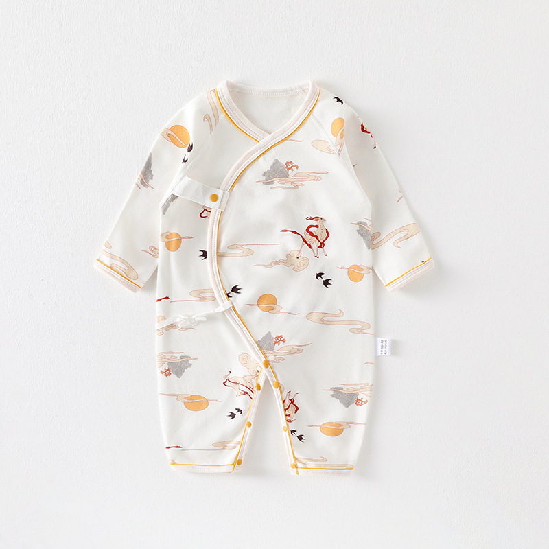 新生婴儿衣服春秋纯棉无骨哈衣刚出生宝宝连体衣中国风满月服爬服