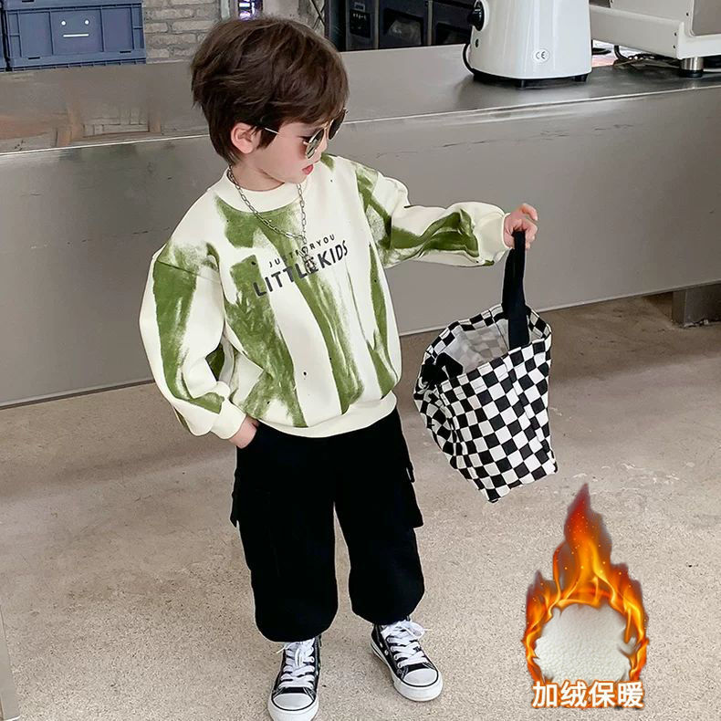 男童加绒卫衣套装秋冬季2025新款潮童装小童网红帅气洋气儿童衣服
