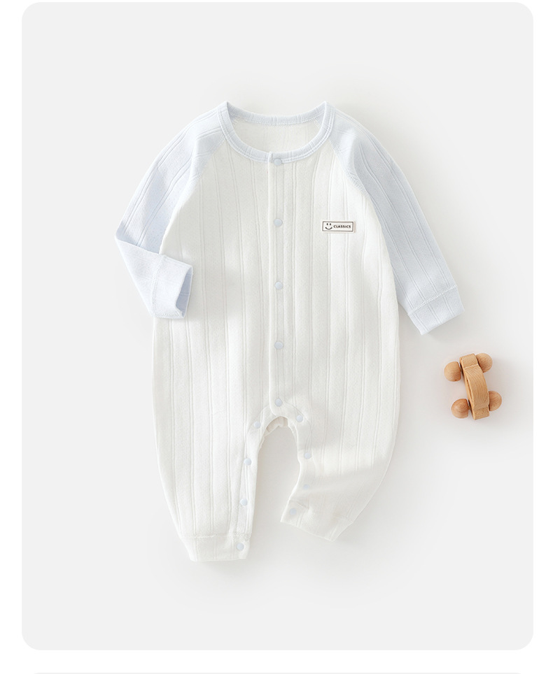新生儿春秋纯棉长袖连体衣婴幼儿四季款睡衣衣服宝宝秋季提花哈衣
